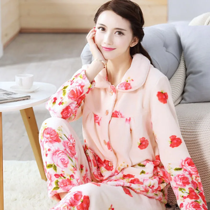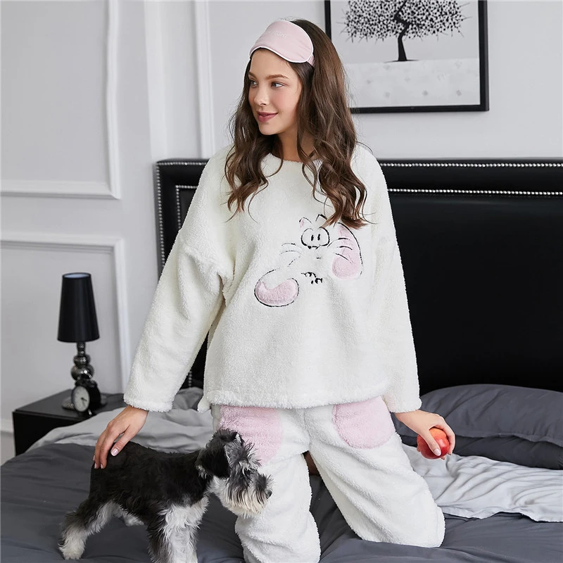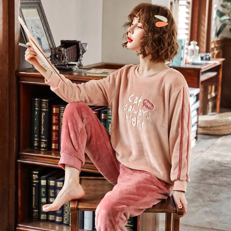 MYTL-Bu Nai Autumn Winter New Pajamas Two Piece Fashion With Pocket Casual Home Service Pajamas Sets