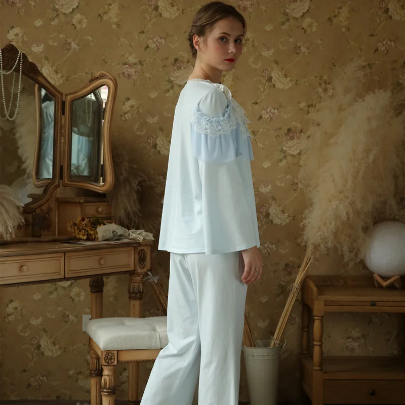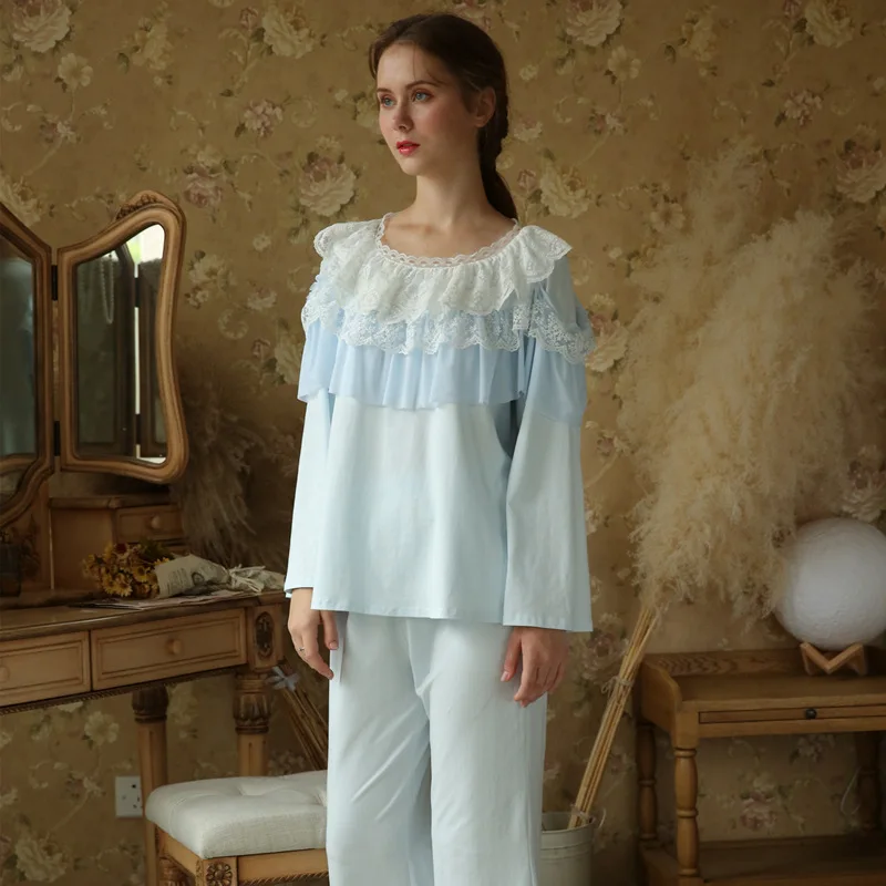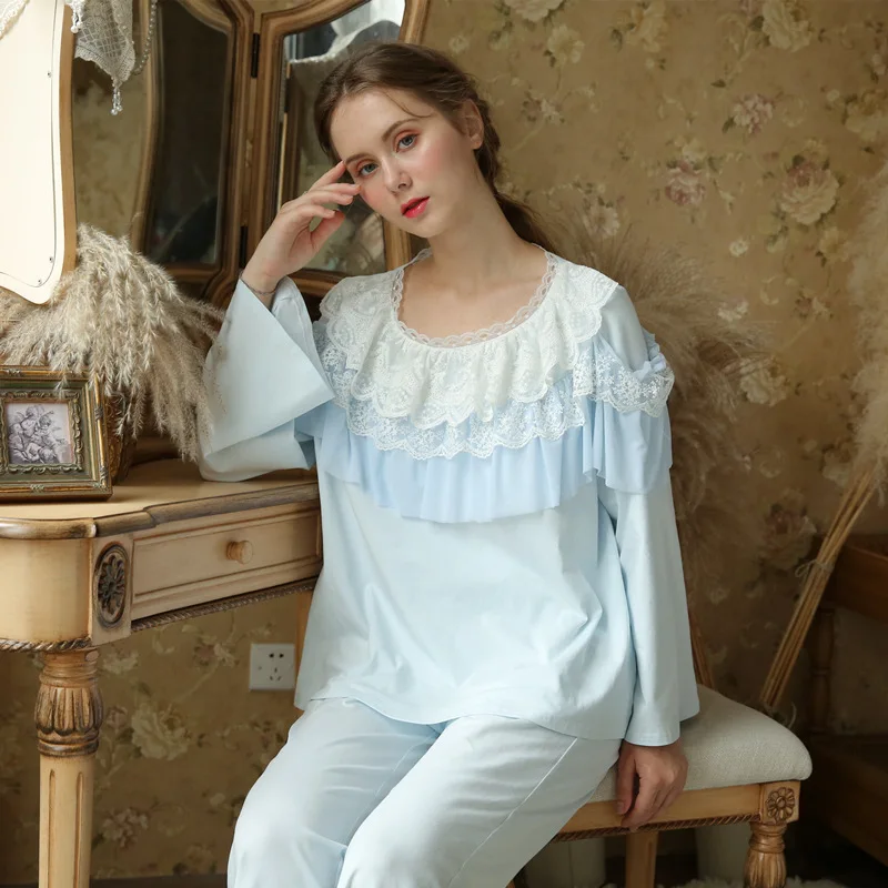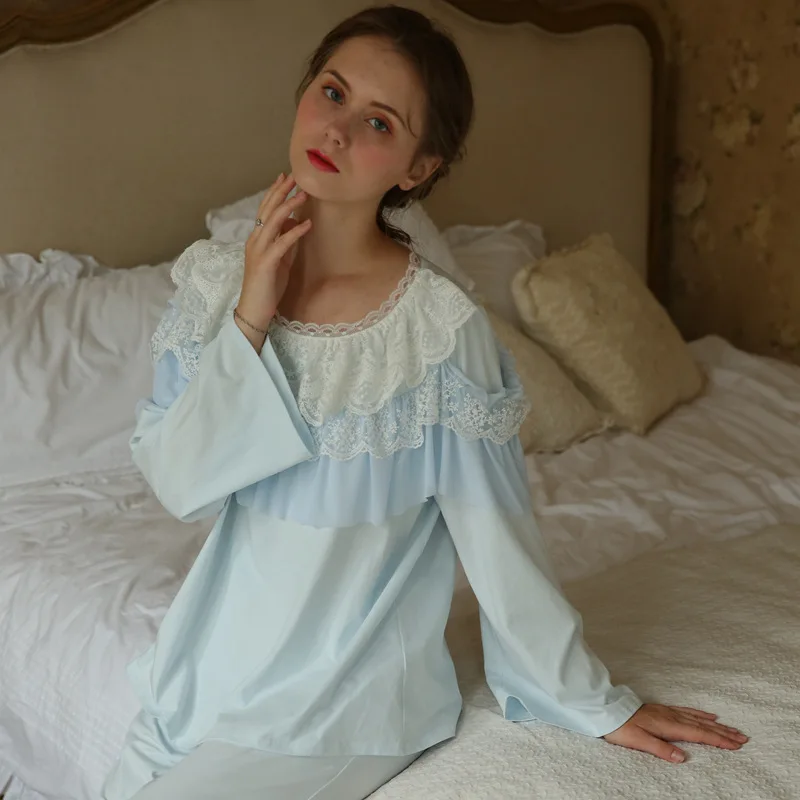 New Palace Wind Lace Nightdress Female Princess Bud Silk Gauze Pajamas Retro Long-Sleeved Home Service Woman Sleepwear HZL82