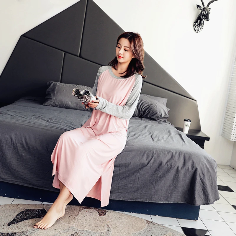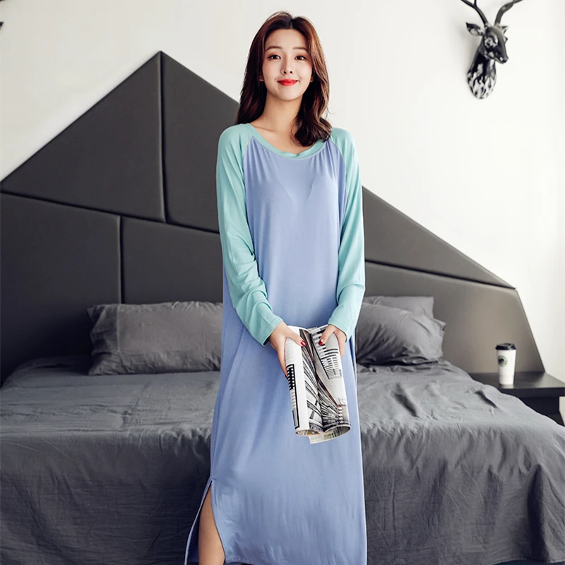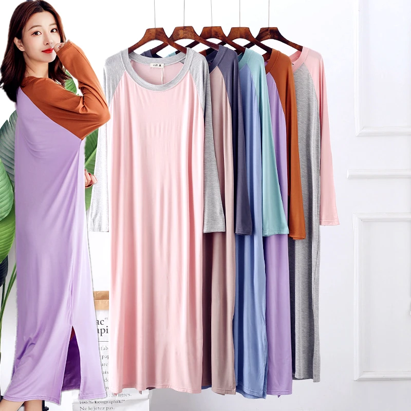 2019 New Spring Loose Night Dress Women Sleepwear Nightgown Cotton Soft Comfortable Modal Long Sleeping Dress Night Wear