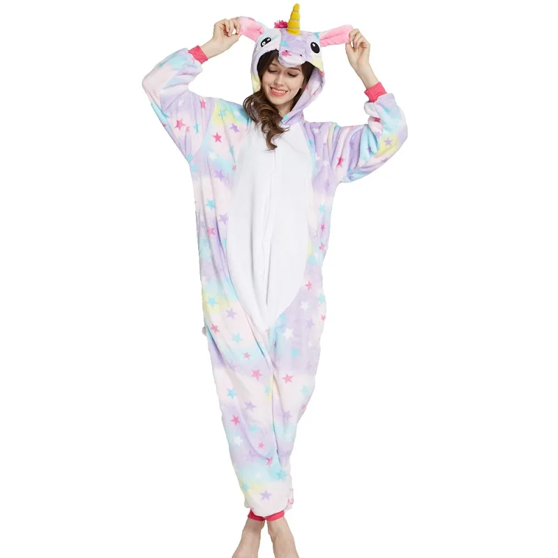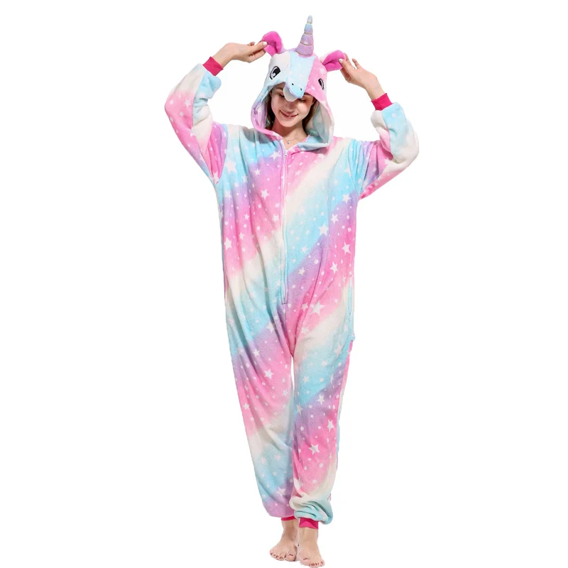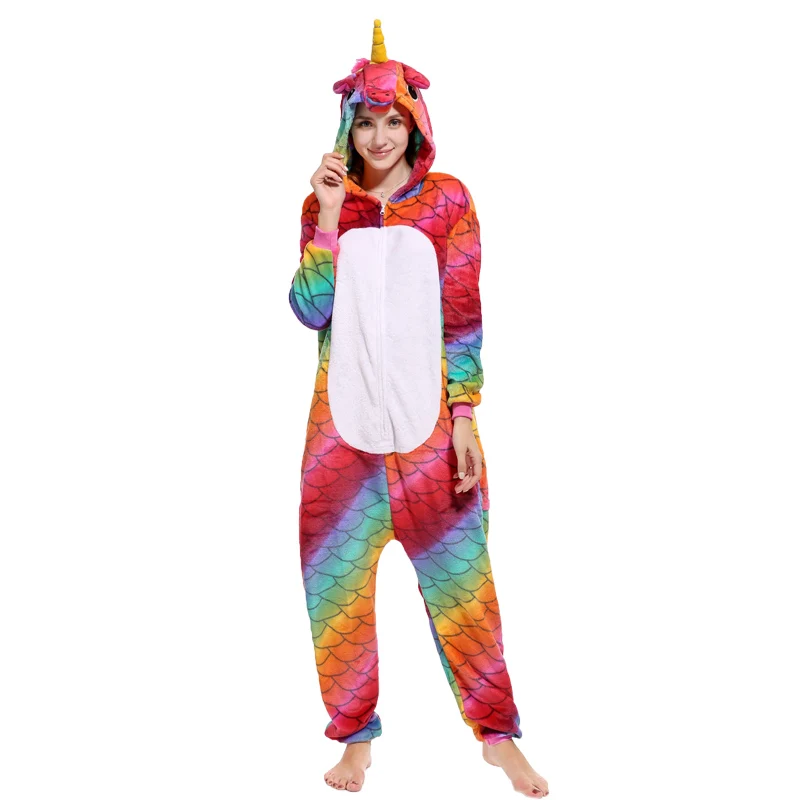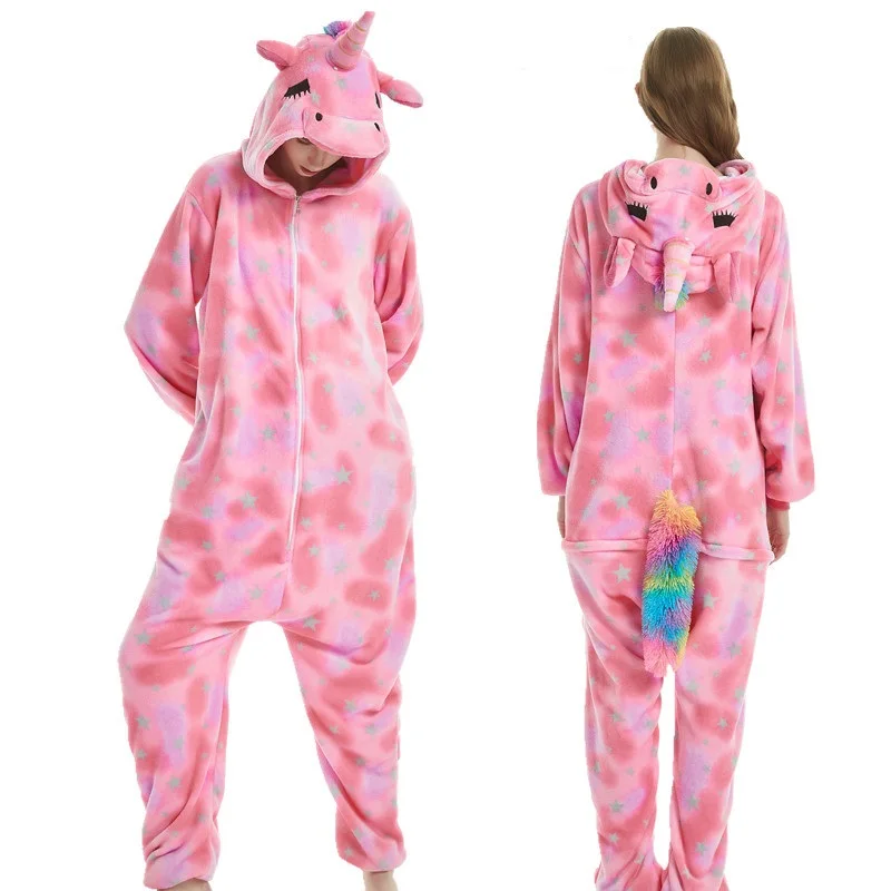 24 New Winter Adult Warm Pajamas Set Flannel Hooded Animal Pegasus Unicorn Women Pyjamas Cartoon Cosplay Men Women Sleepwear