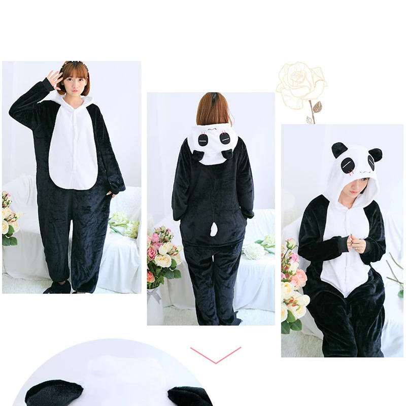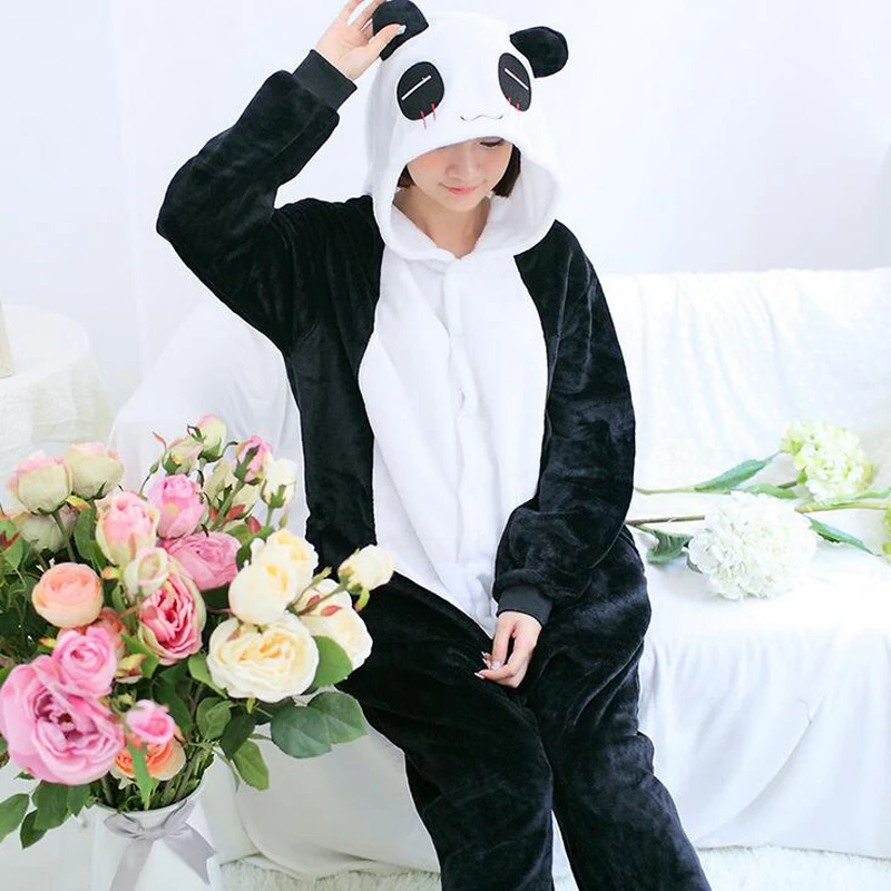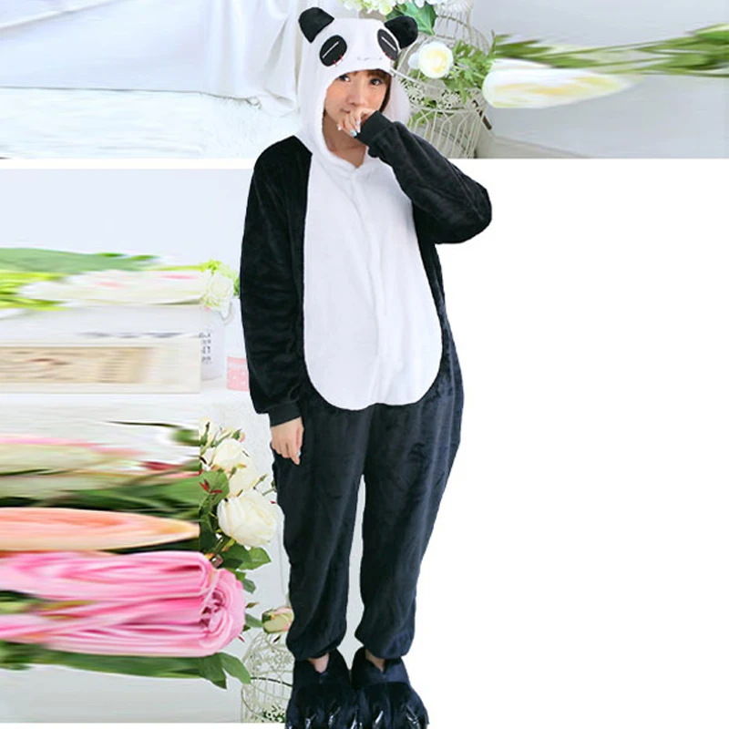 New Winter Character Panda Unisex Adults Couple Flannel Pajamas Sets Cosplay Cartoon Animal Onesies Sleepwear For Women Men 3074