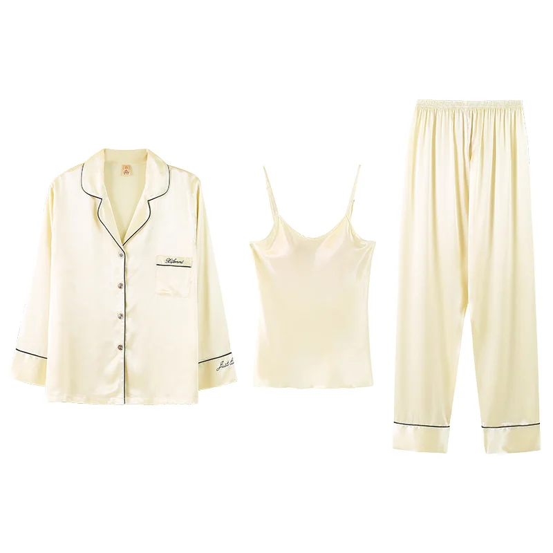 Xifenni Pajamas Faux SILK Sleepwear Women Three-Piece Pyjama Sets Female With Chest Pad Casual Simple Home Clothing 1700