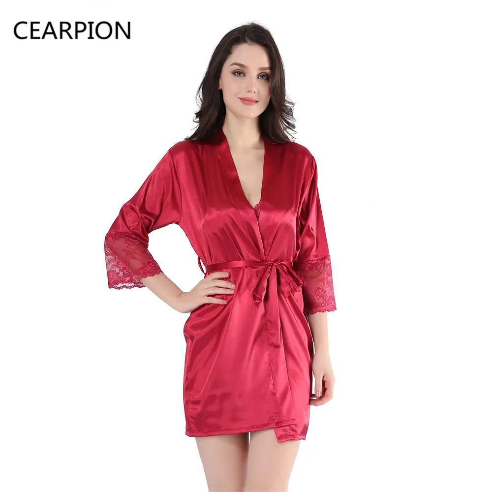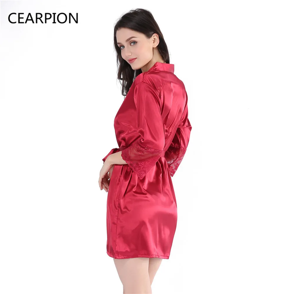 CEARPION Women Satin Short Robe Nightgown Kimono New Lingerie Bathrobe Pajamas Wedding Bride Bridesmaid Sexy Bath Gown Negligee