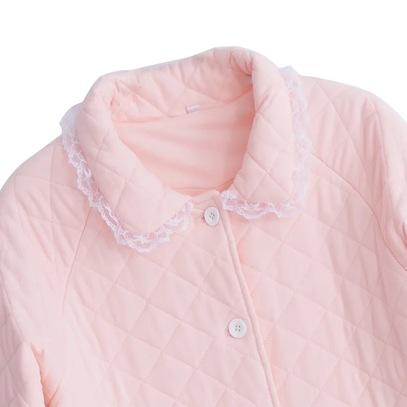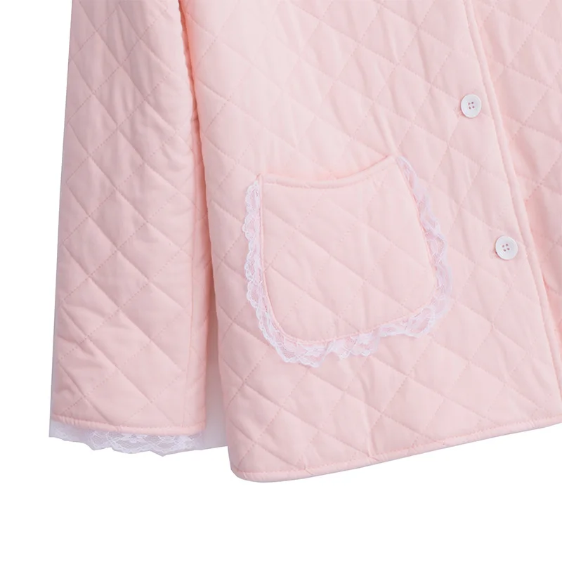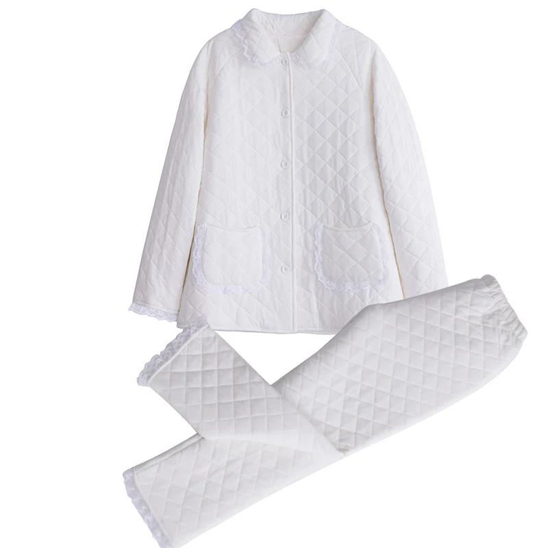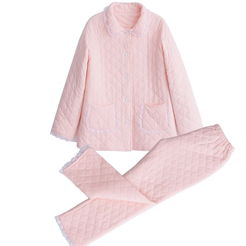 2019 Winter New Cotton Woman Pajamas Two-Piece Long-Sleeve Princess Lace Sleepwear Female Thicken Keep Warm Pyjama Sets DS1007