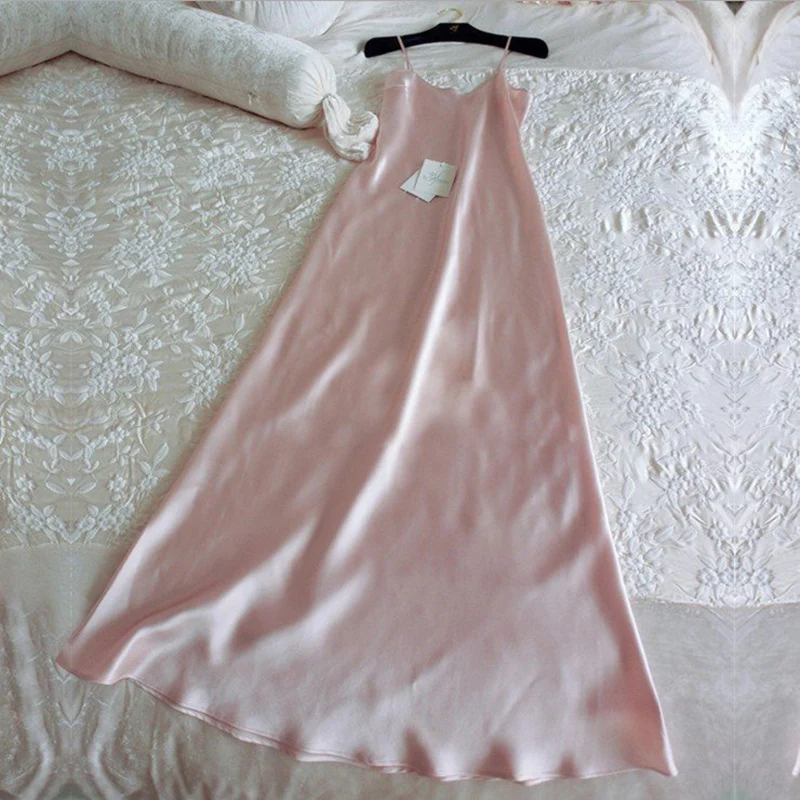 Summer New Silk Woman Nightgowns Sling Long Style Pink SILK Nightdress Female Thin Sexy Home Dress Soft Sleepwear LMR01