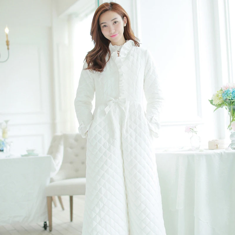 2019 Winter New Cotton Sleeping Robes Female Keep Warm Princess Sleepwear Woman Long-sleeved Thicken Bathrobe Kimono DS1008-2