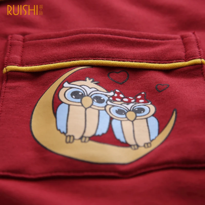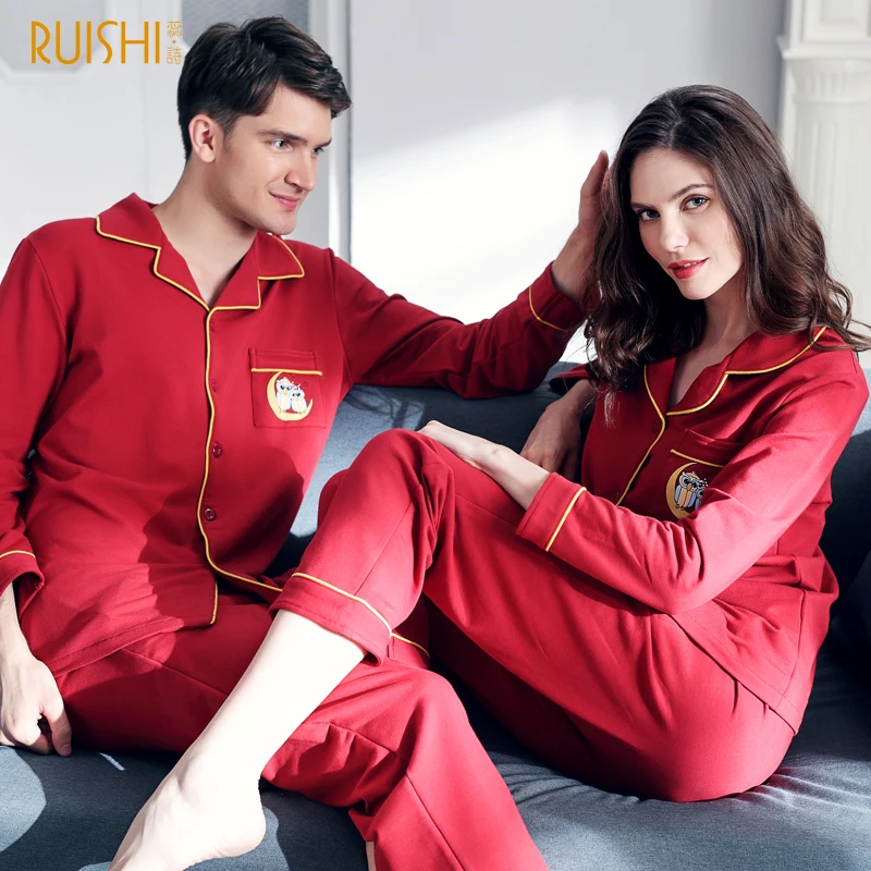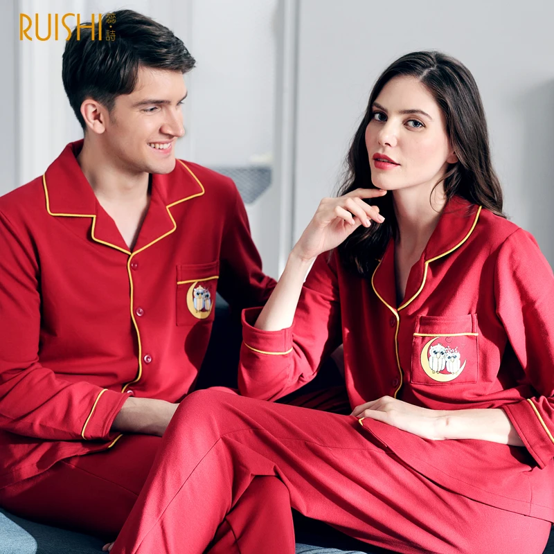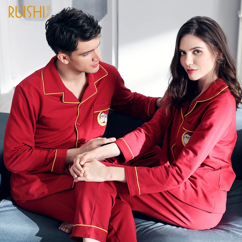 J&Q new men and women matching pajamas cotton clothing night owl printed sleepwear Christmas pyjamas couples red wedding pijamas