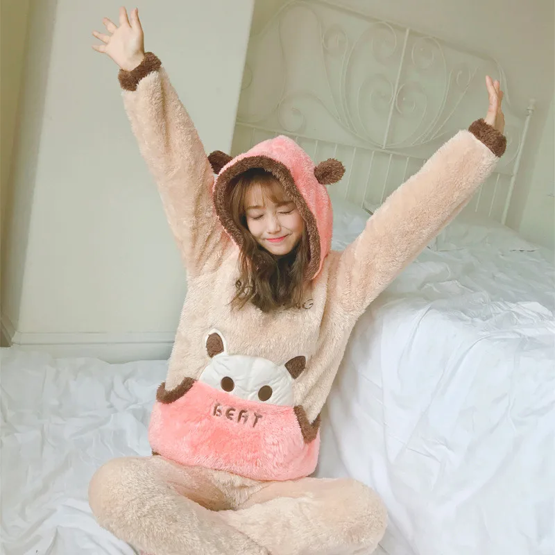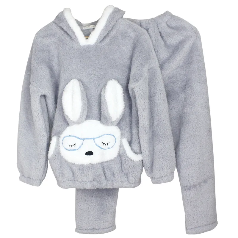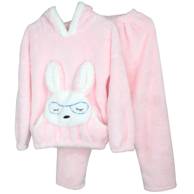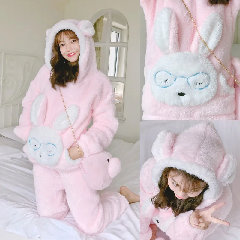 JULY'S SONG Autumn Winter Pajamas Women Pajama Sets Flannel Pink Rabit Cartoon Thick Warm Women Sleepwear Cute Animal Homewear