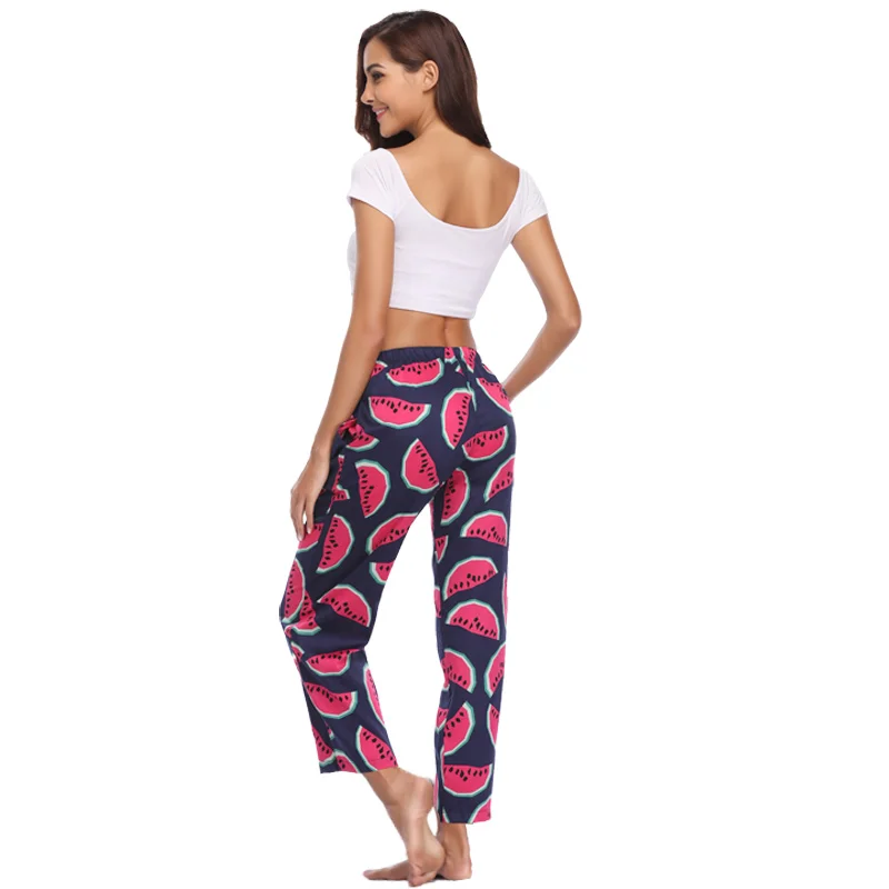 Cotton Satin Pajama Pants Women Spring Autumn Printed Long Sleep Bottom Elastic Waist Lounge Pants Femme Home Pants