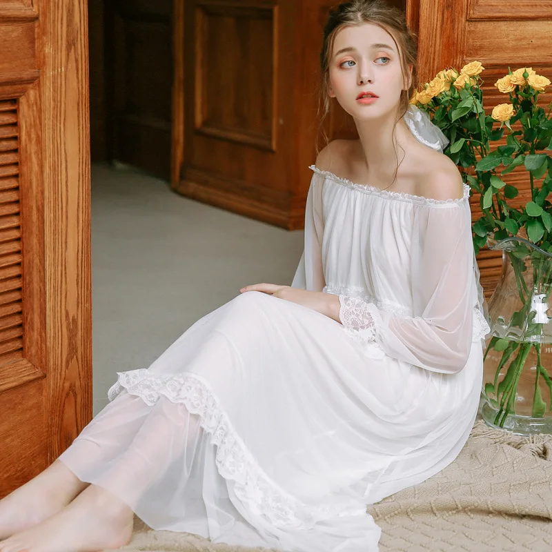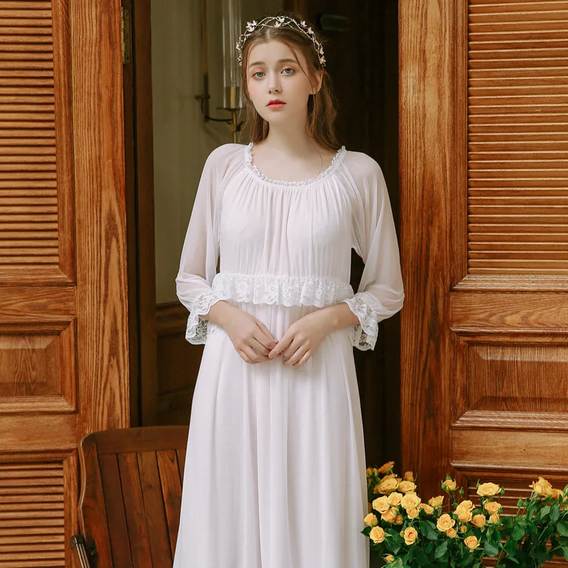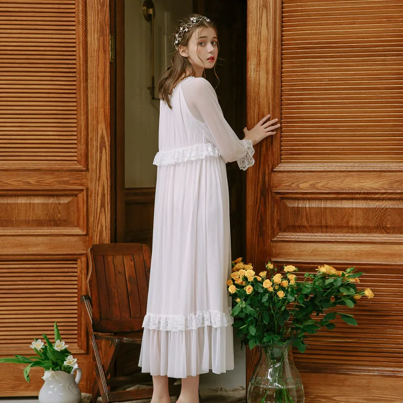 Court Princess Wind Pyjamas Women Spring Retro Sexy Cute Long Sleeve Lace Tulle Sweet Nightdress Woman's Sleepwear HZL57