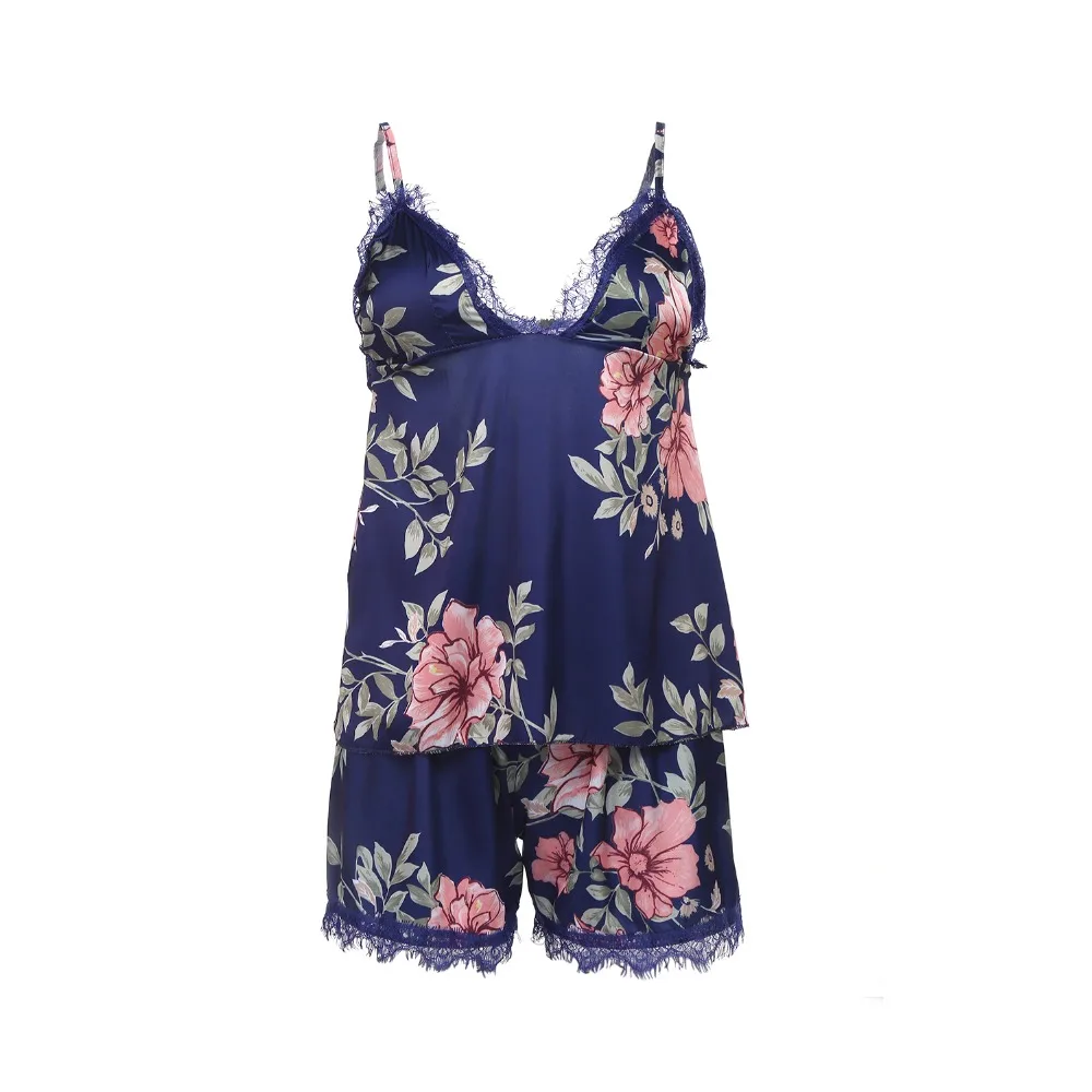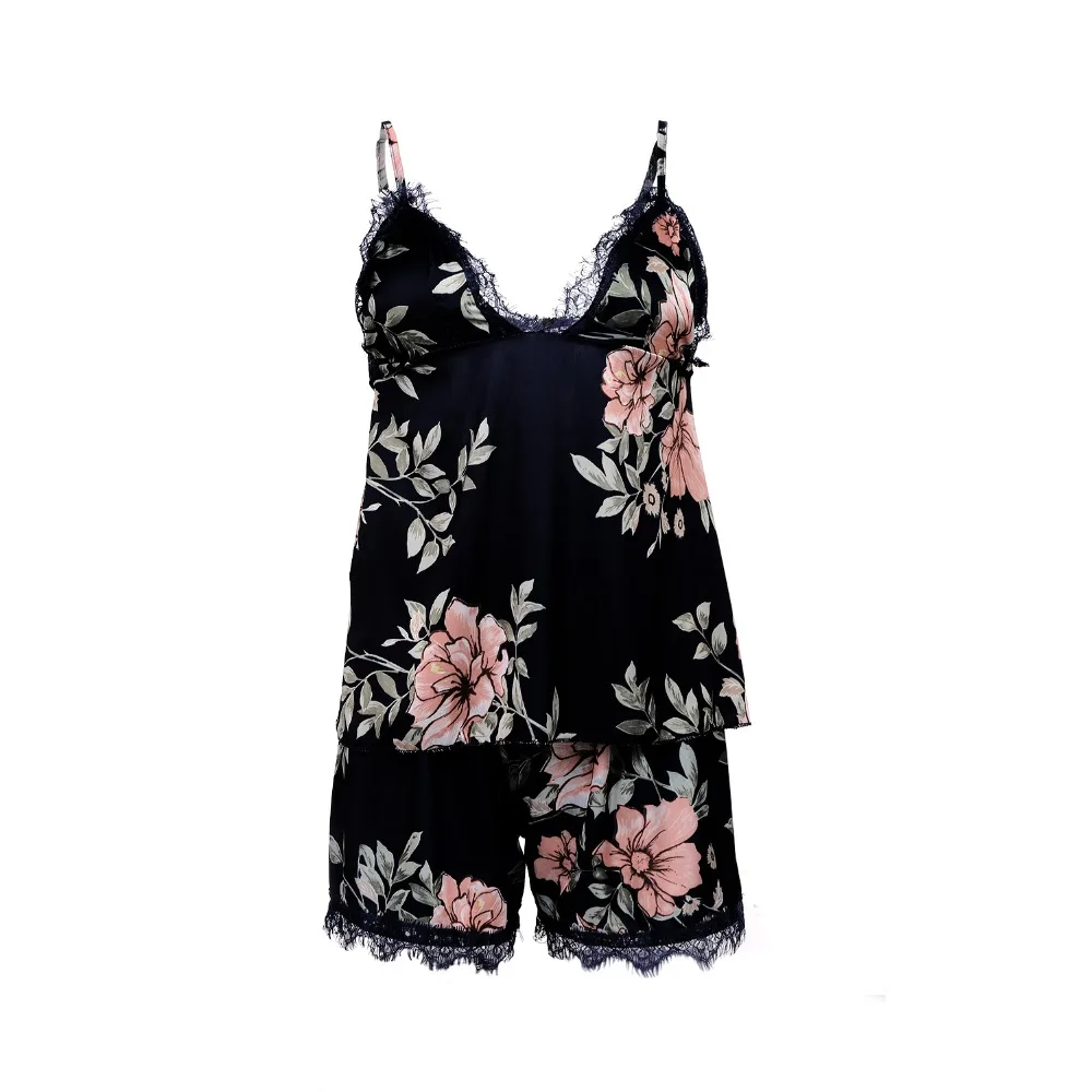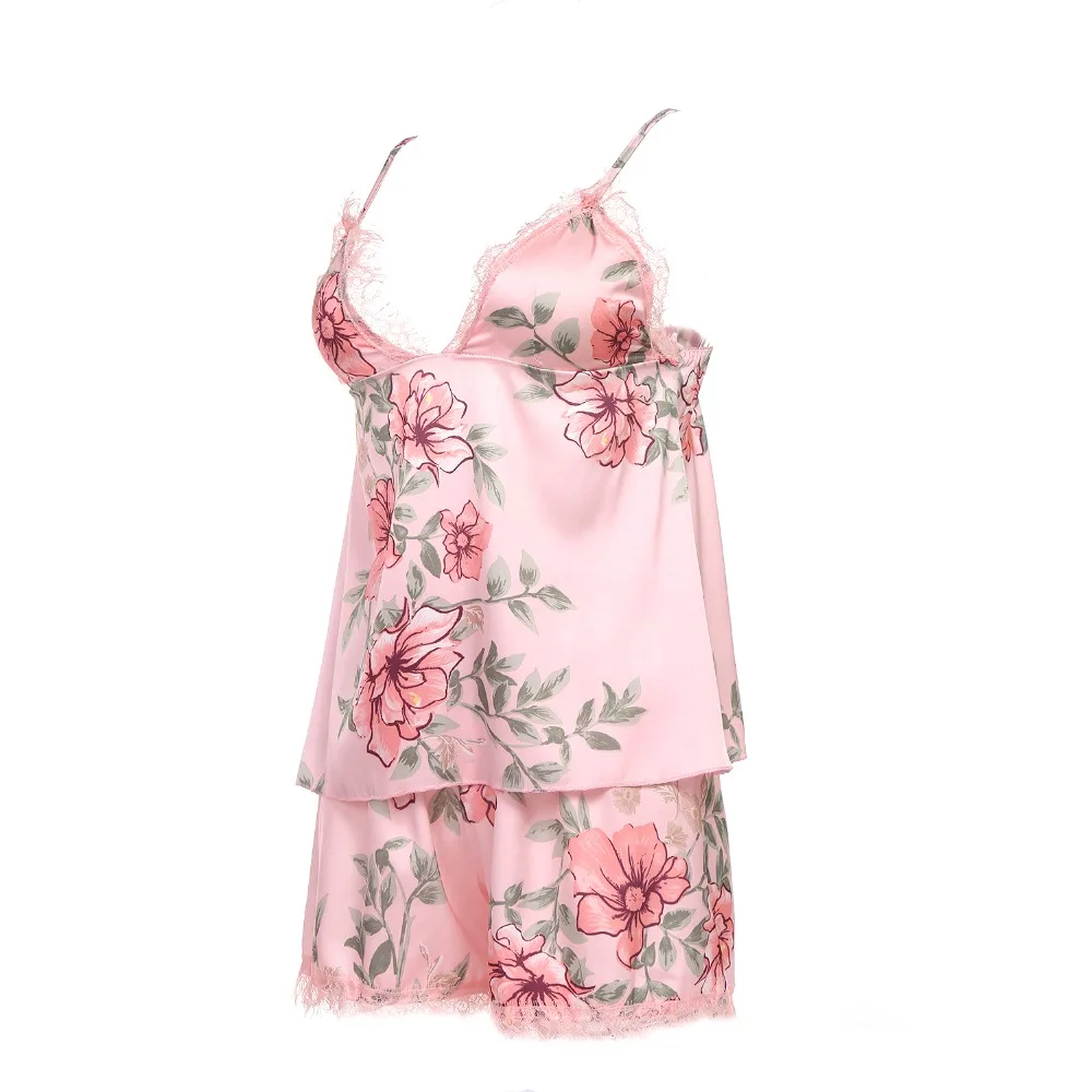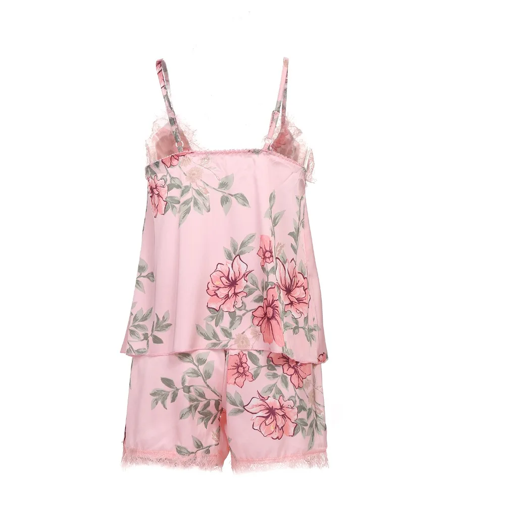 Ekouaer Pajama Set Sexy Satin Sleepwear Women Summer Pyjama Flower Printed Sleep Lounge Shorts Pajamas Ladies Homewear Clothing