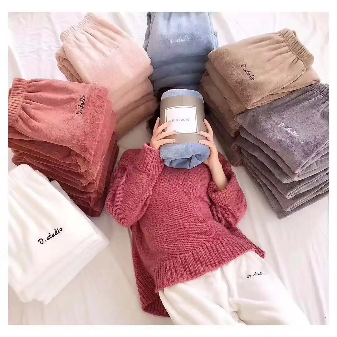 HaoMengFen Fashion of Explosive Sleeping Pants, Winter Flannel Bottom Trousers, Loose Fairy Warm Pants, Leisure Home Outwear