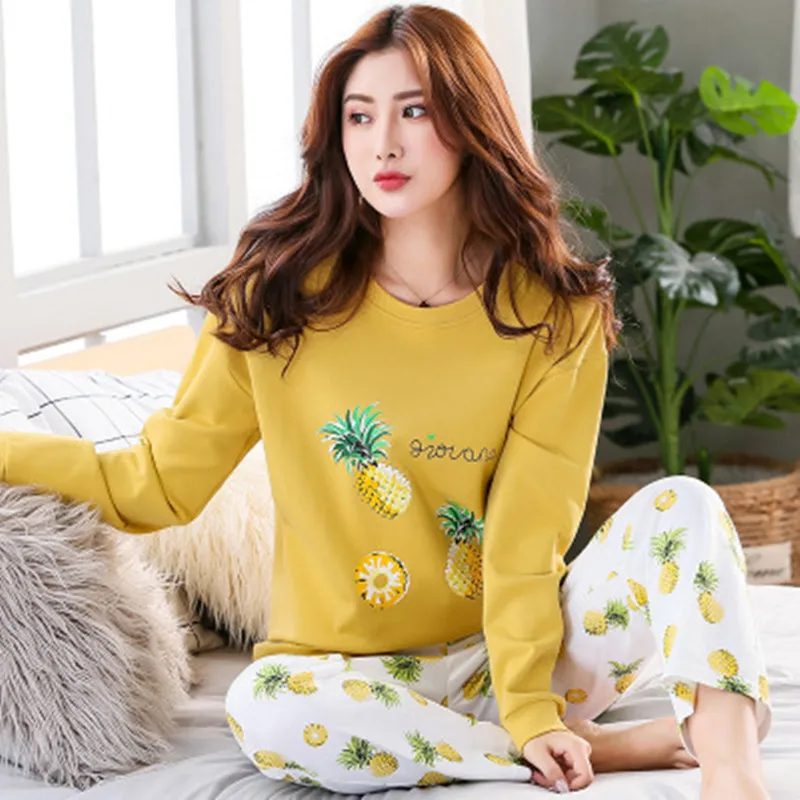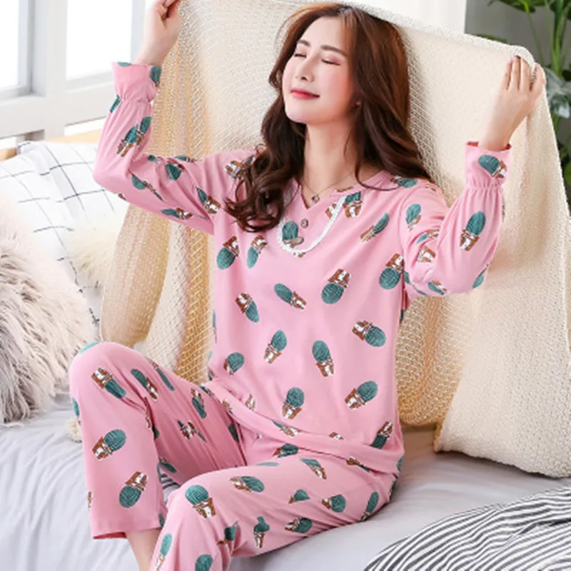 Mom Pajamas Set 100 % Cotton Soft Female Homewear Clothing Sweet Pyjamas Suit 2019 Top Fashion