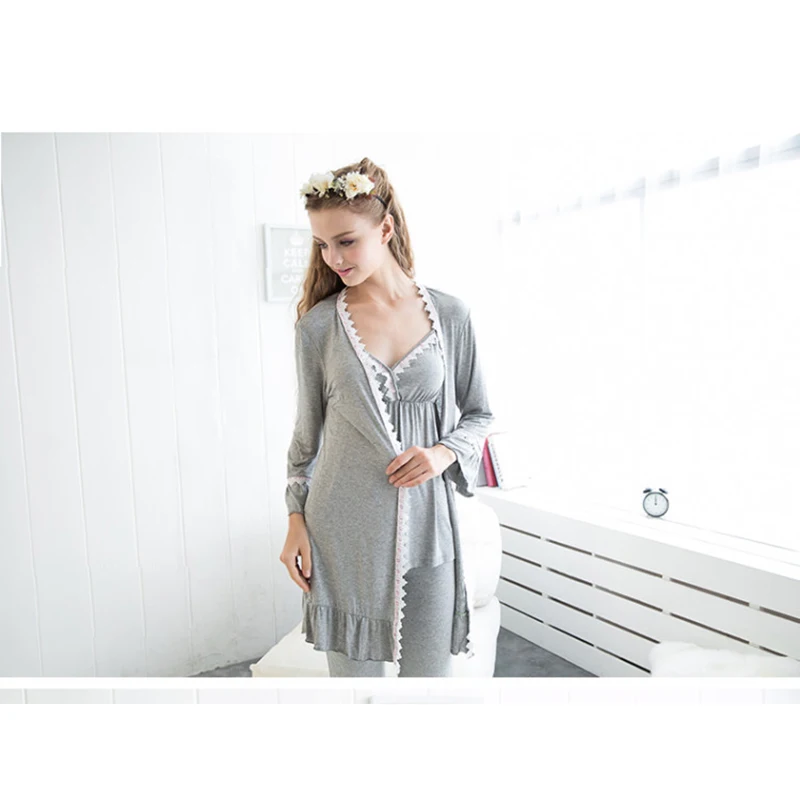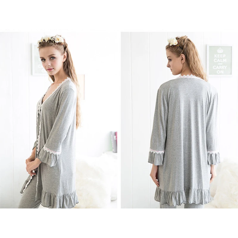 New Spring and autumn three-piece home service Japan and South Korea women's thin bamboo fiber cardigan pajamas