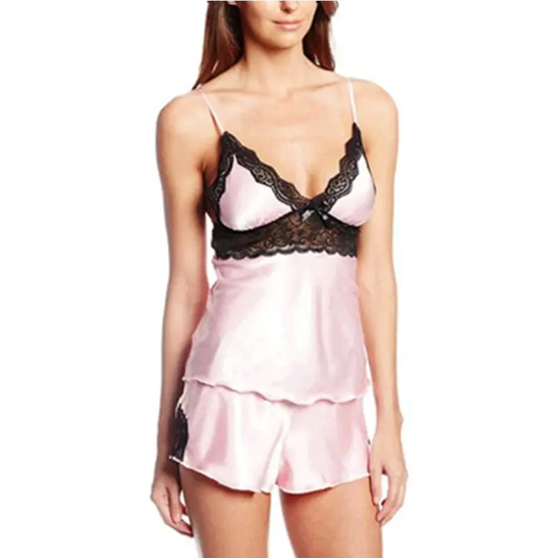 Brand Women Sleepwear Sleeveless Nightwear 2018 Lace Satin Summer Cami Top and Shorts Pajama Sets Sexy Lingerie Intimate Sets V2