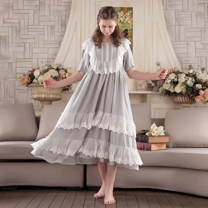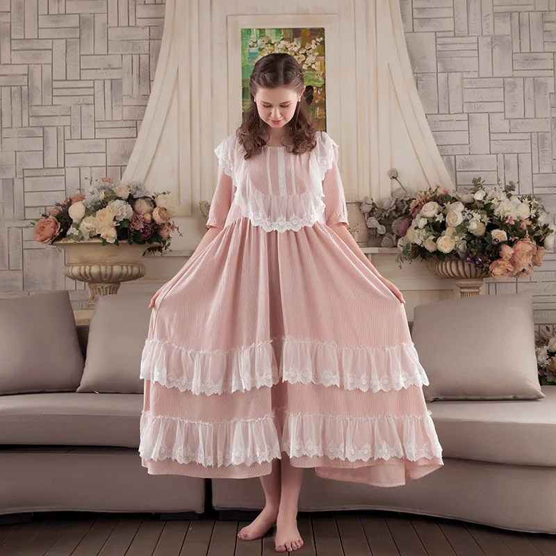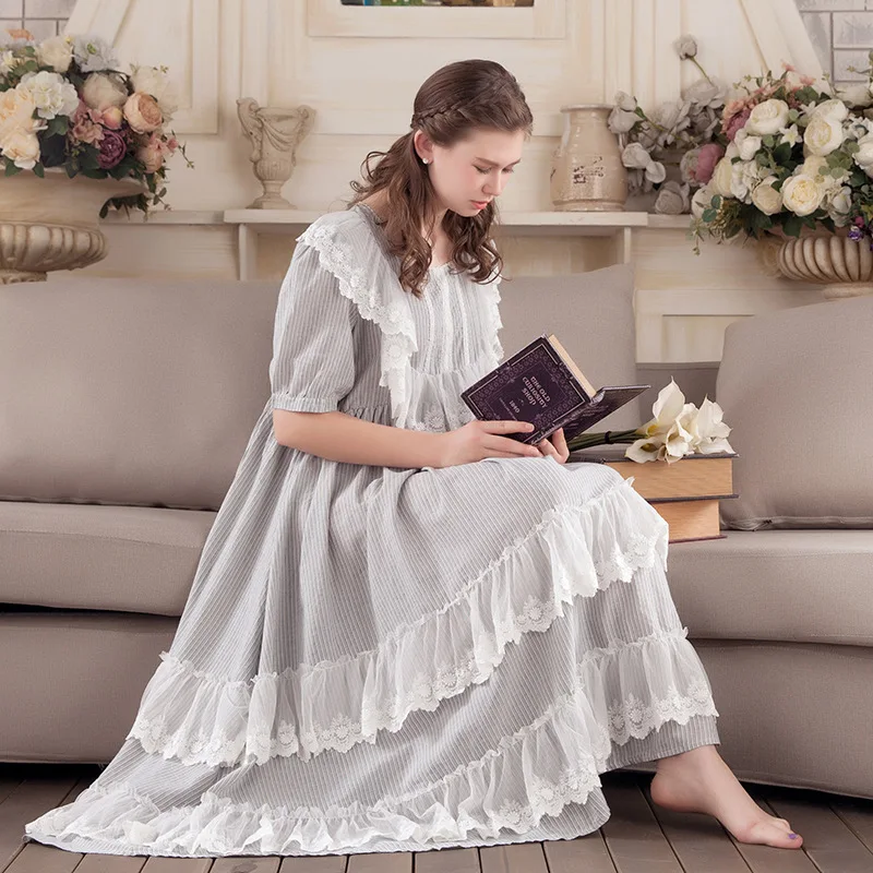 HOT Sale Retro Princess Nightgowns 2019 NEW Sweet Lace Women Long Nightdress Half Sleeve Elegant Lady Sleeping Dress P701