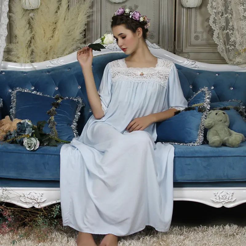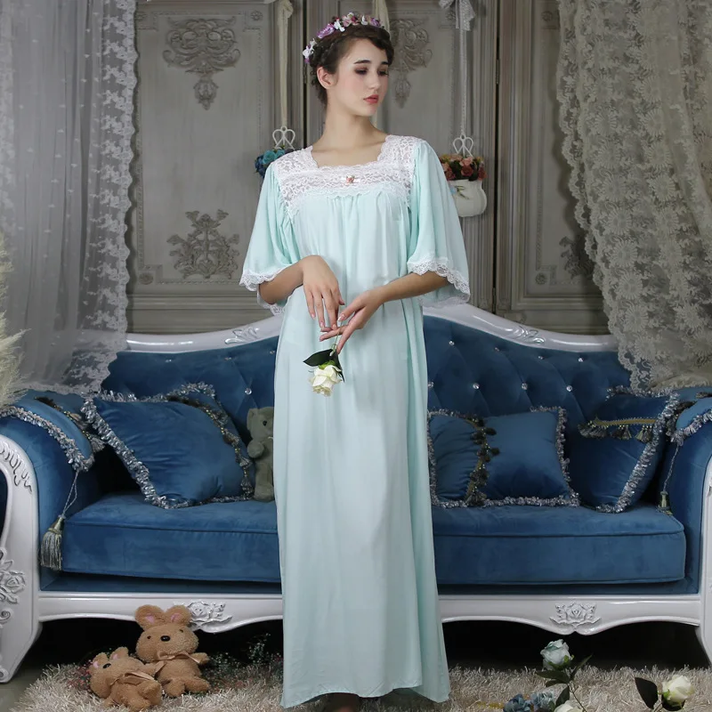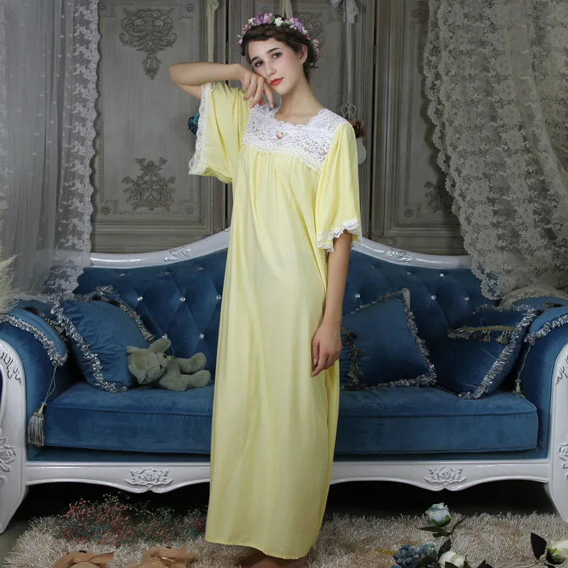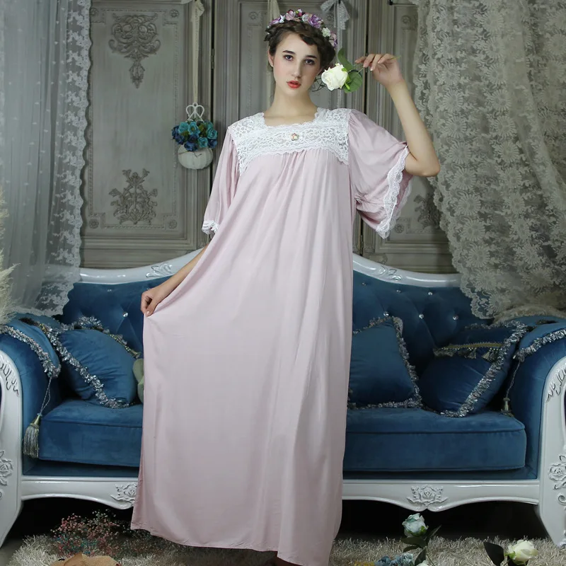New Arrival Retro Princess Nightgowns Royal Palace Nightdress Sweet Lace Sleepwear Female Loose Plus Size For Woman BL8018