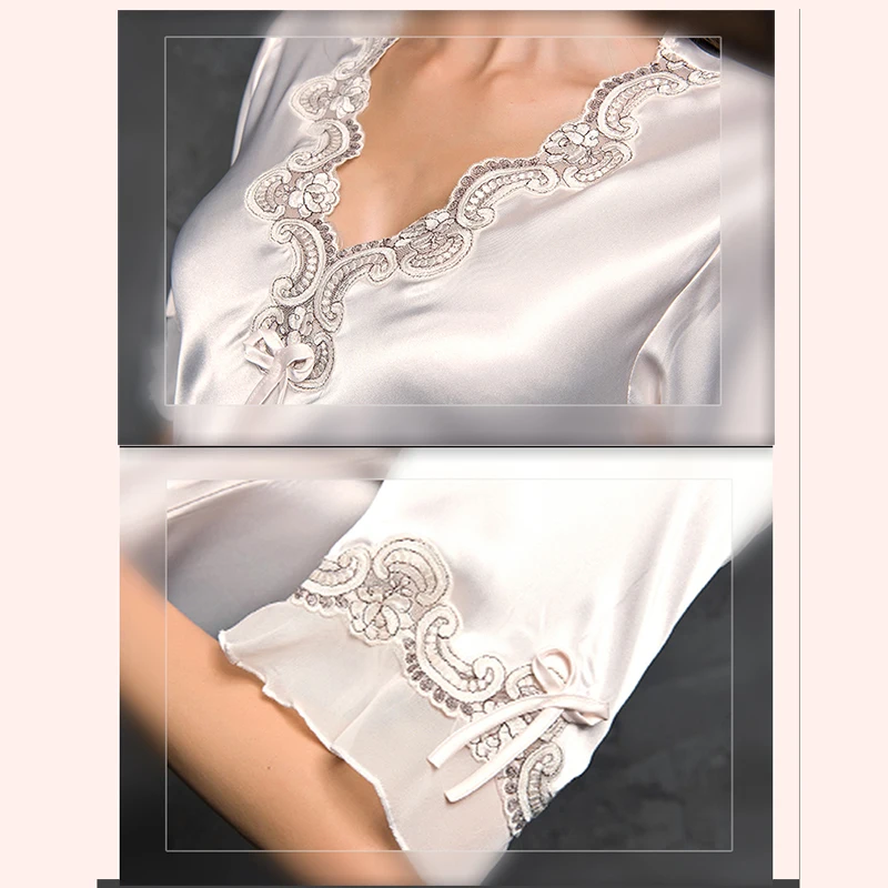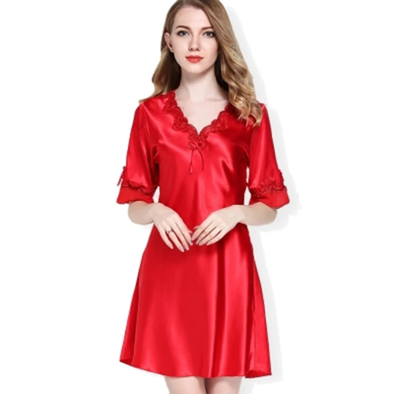New Women Satin Sleepwear Silk Nightgown Half Sleeve Embroidery Night Dress Sexy Lingerie Nightie Dress Shirt Nightwear Homewear