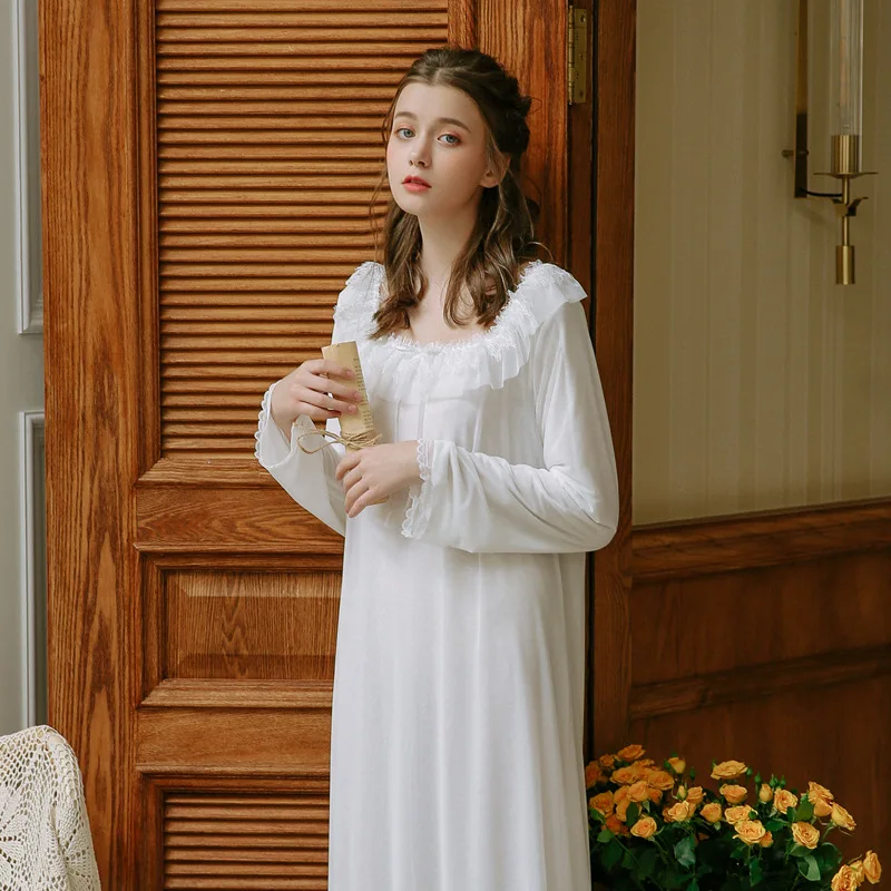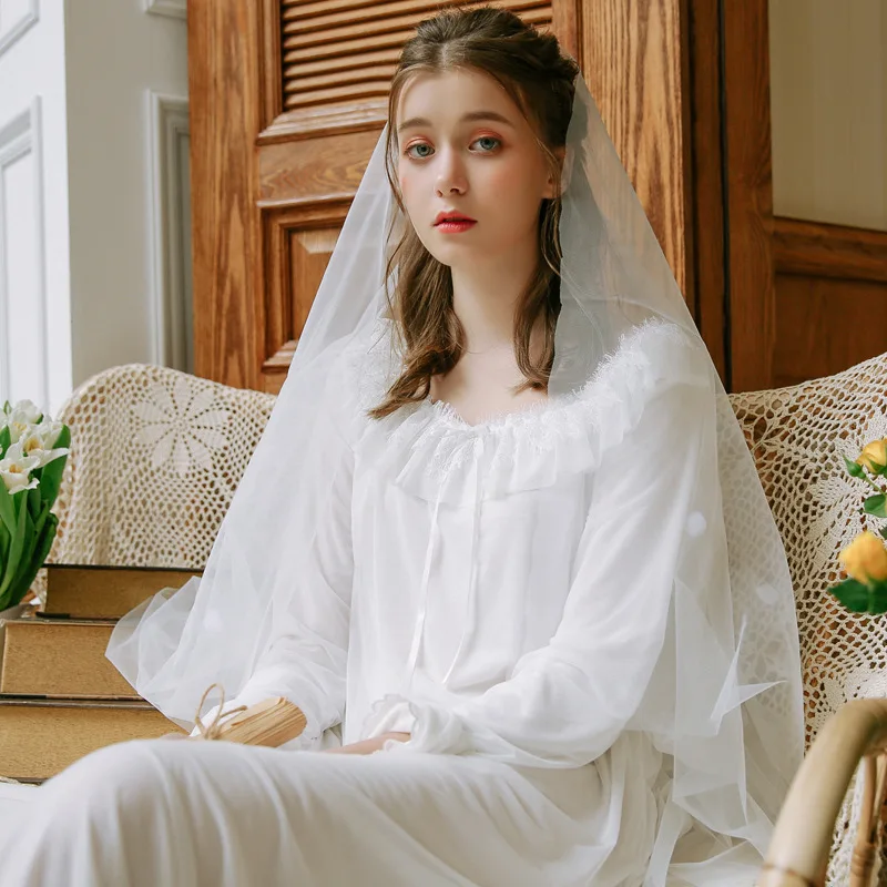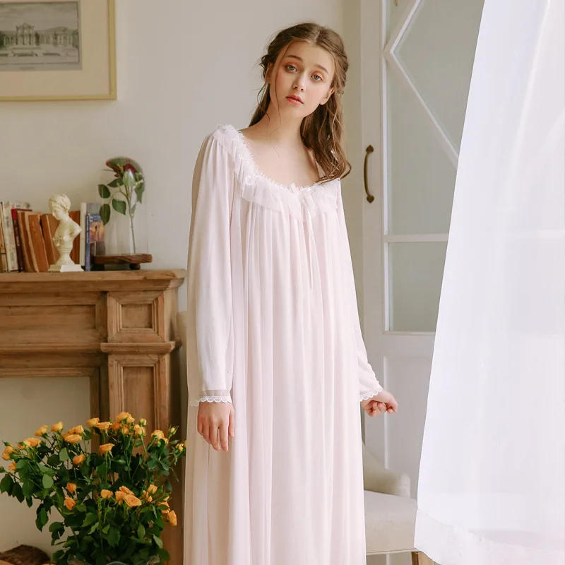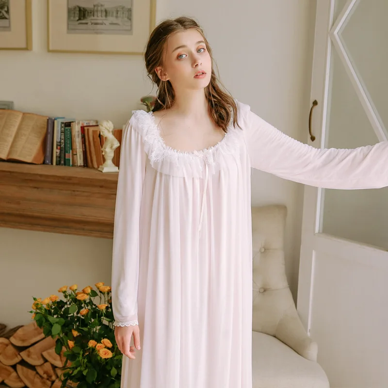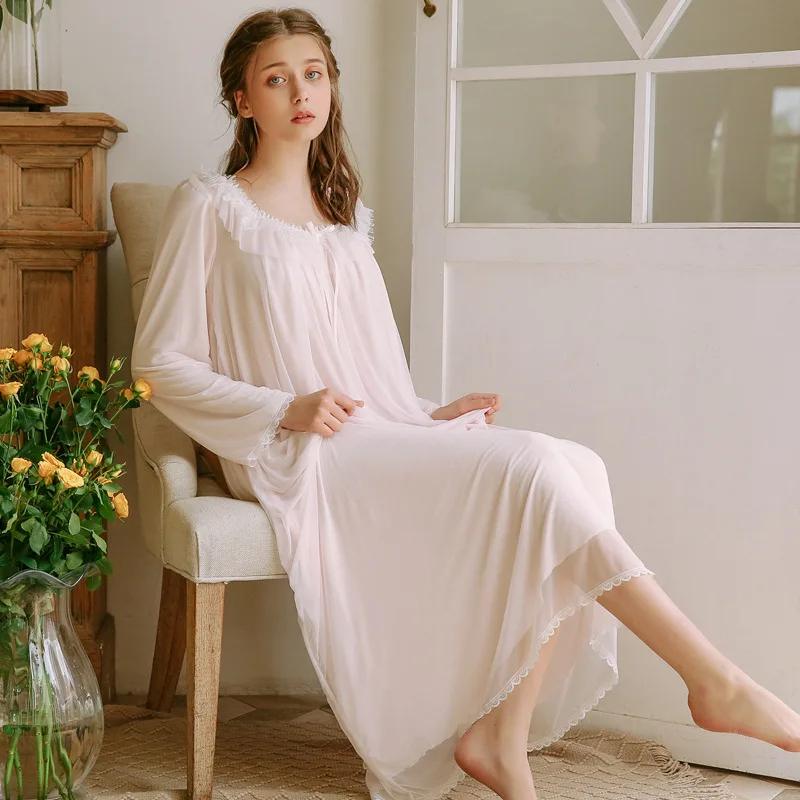 Palace Princess Nightdress Female Spring And Summer Long-Sleeved Sexy Lace Pyjamas Loose Fairy Cute Long Home Service HZL59