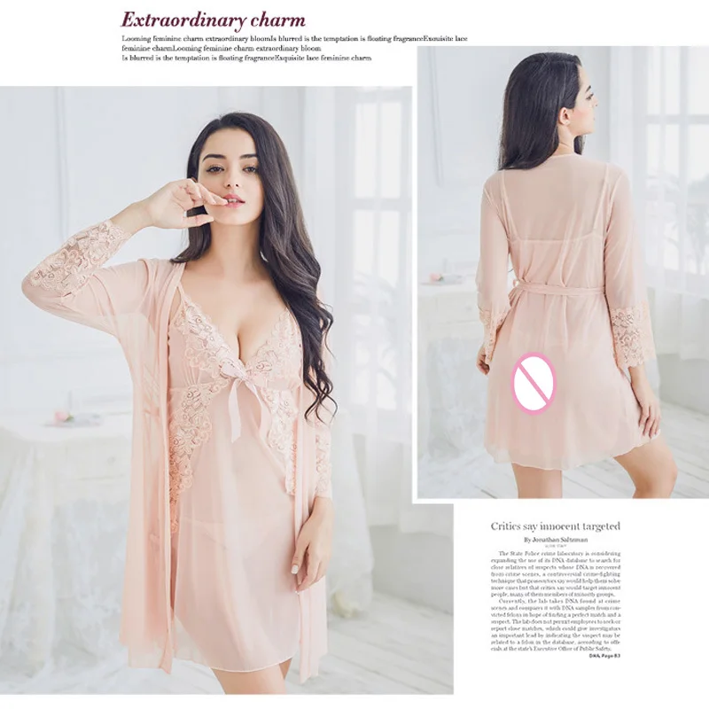 REDCORE Sexy Lingerie Lace Sleepwear Ladies Summer Three Pieces Female V-neck Nightwear Nightgown Home Clothes Women M-XL Mujer