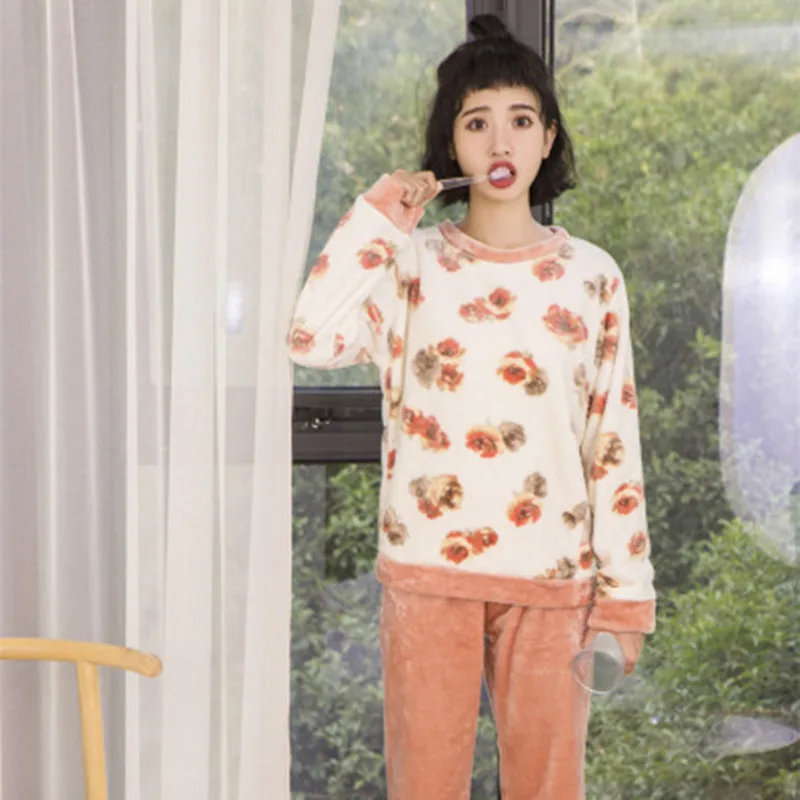 Women Warm Pajamas Set Sexy Cartoon Bunny Flannel Pyjama Home Print Winter Clothes 2019 Top Fashion