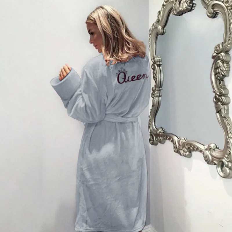 Christmas Queen Letter Flannel Winter Warm Sleep Robes Fluffy Pajama Sets Women's Long Bath Robe Bathrobe Dressing Gown Robes
