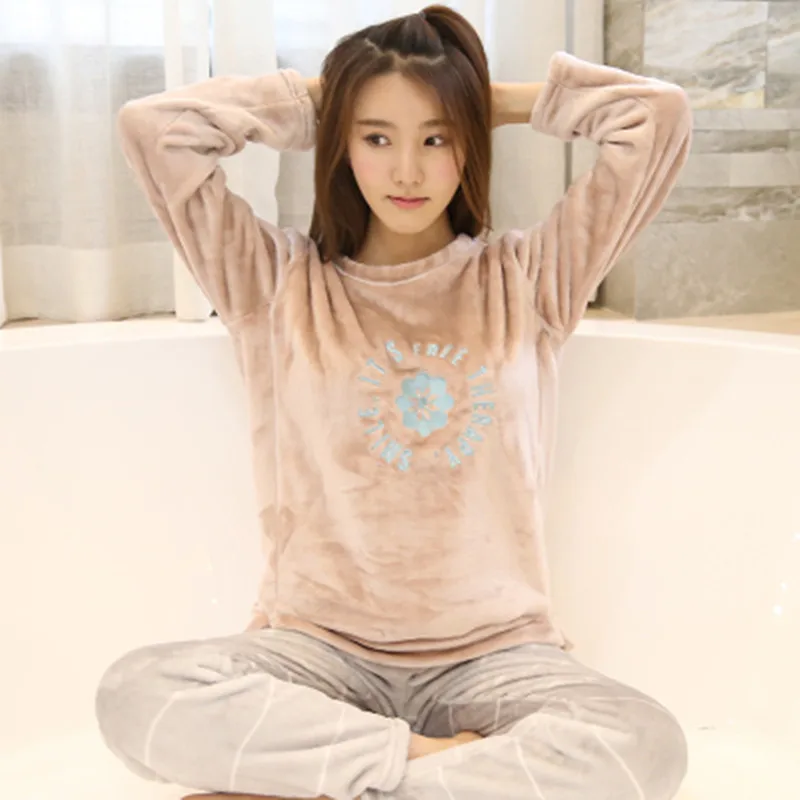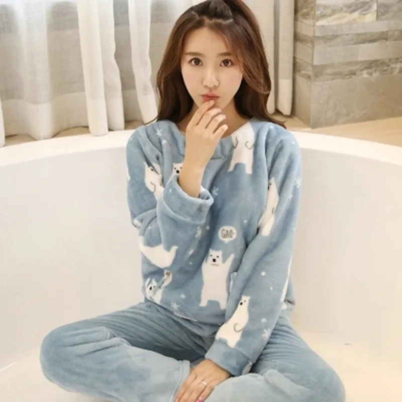 Cute Bear Women Pajamas Set Thick Flannel Warm Female Winter Pajama Long Sleeve Full Trousers Two Piece 2018 Top Fashion