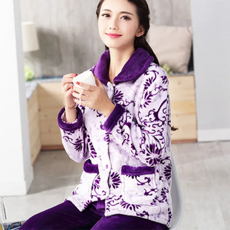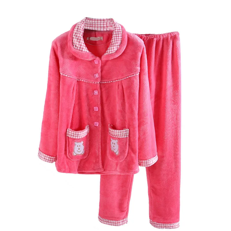 Pajama Female Winter Warm Sexy pajamas Set Polyester Full Trousers Lady Two Piece Cute Cartoon Home Clothing