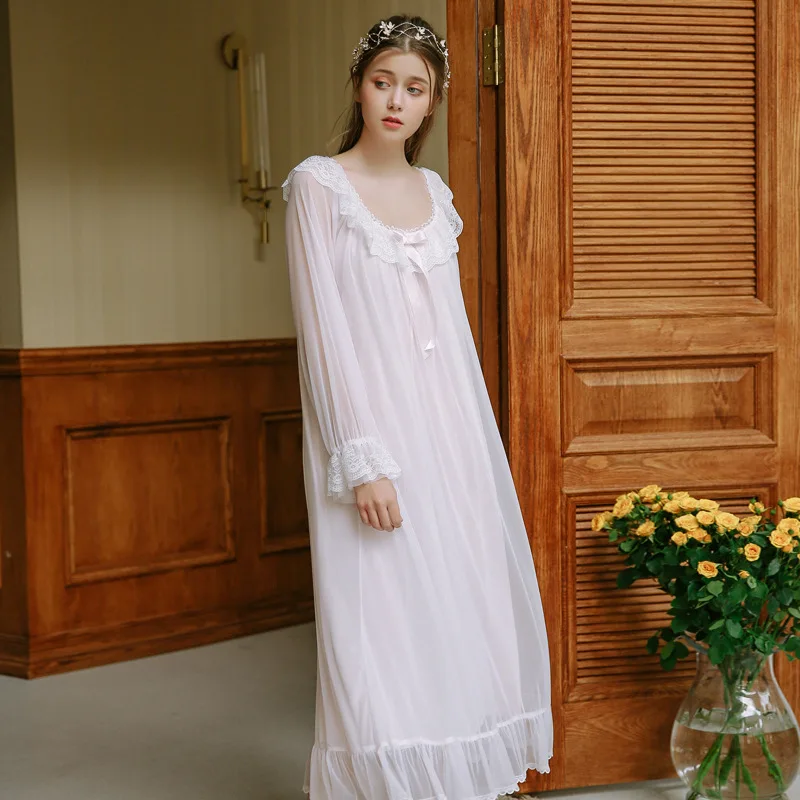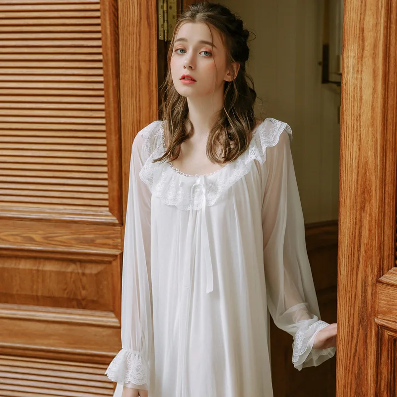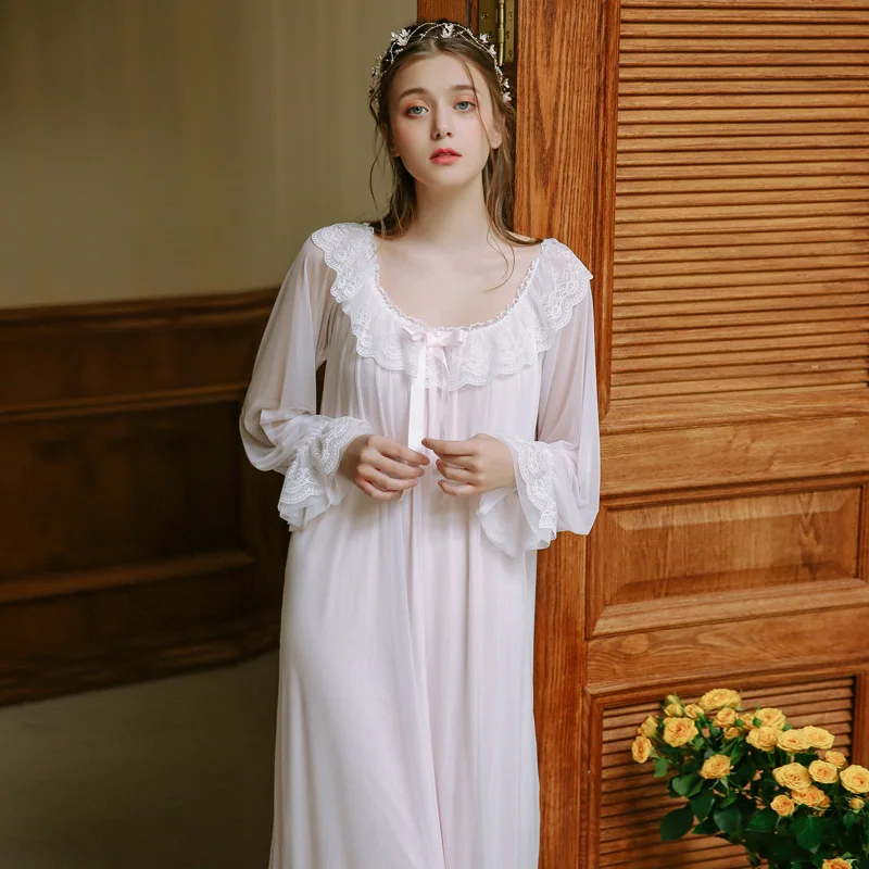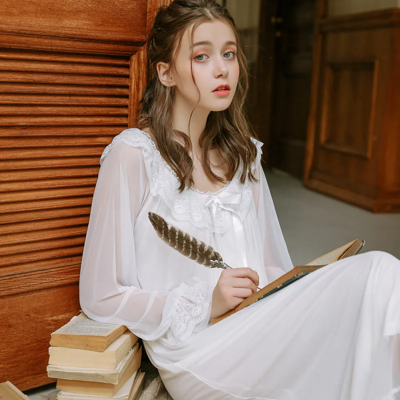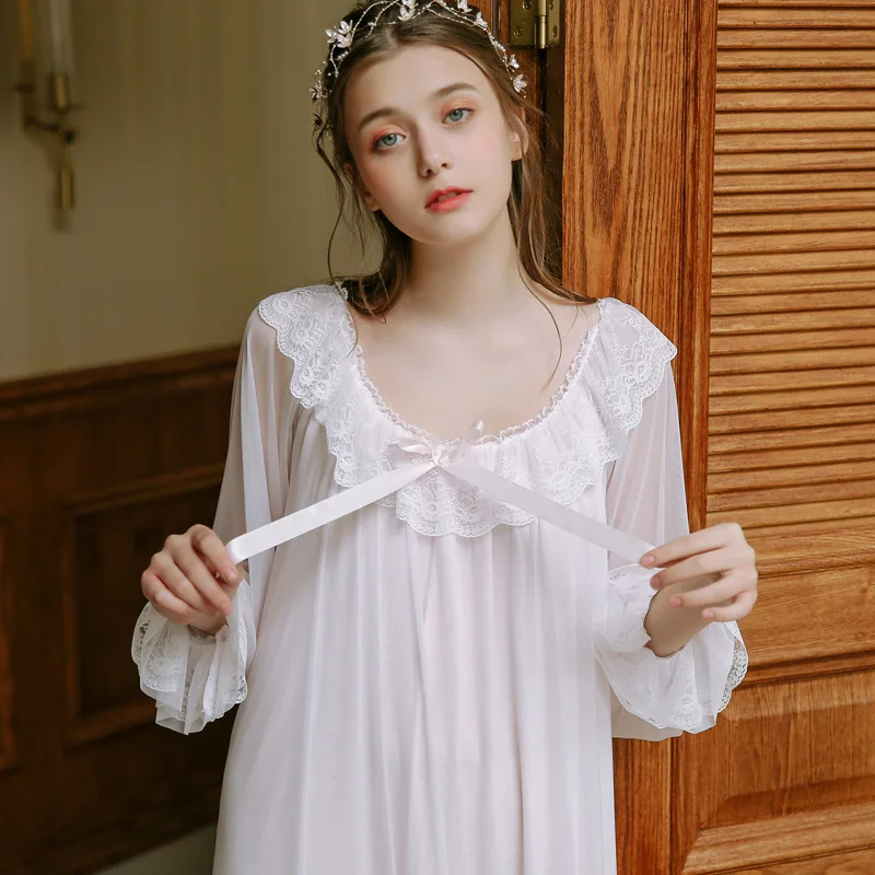 Palace Nightdress Spring Season Retro Lace Home Service Princess Style Sexy Pyjamas Women Long Sleeves Sleepwear HZL56