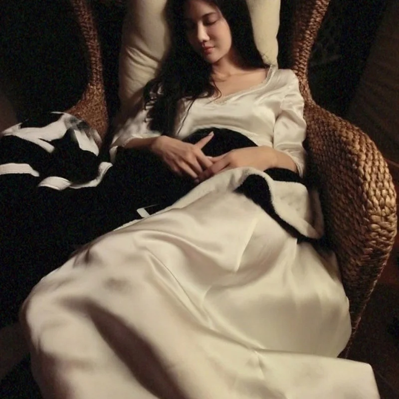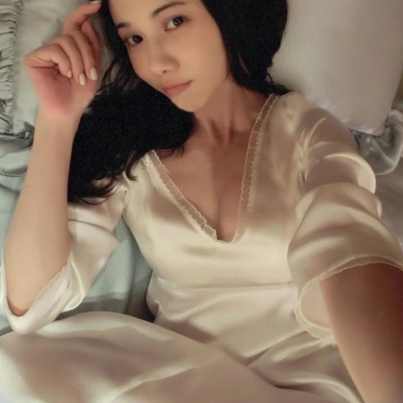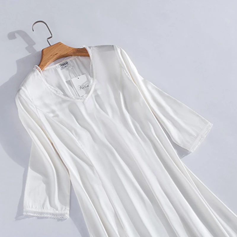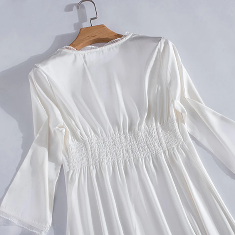 SILK Sleepwear Female Summer Retro Sexy Long Style Princess Nightdress Long-Sleeve Woman Nightgowns Home Wear DS2033