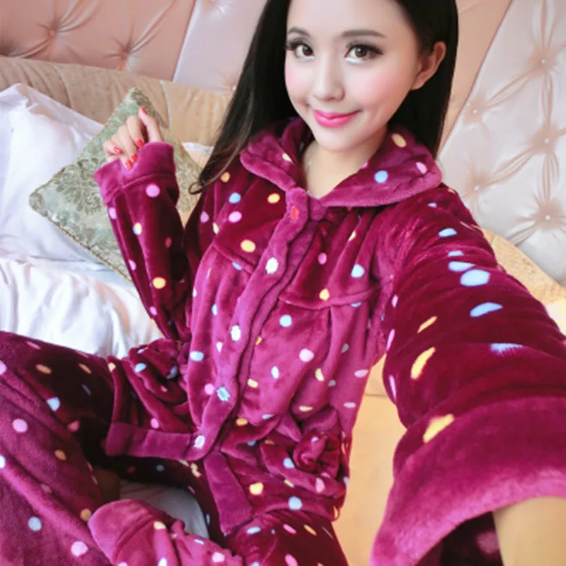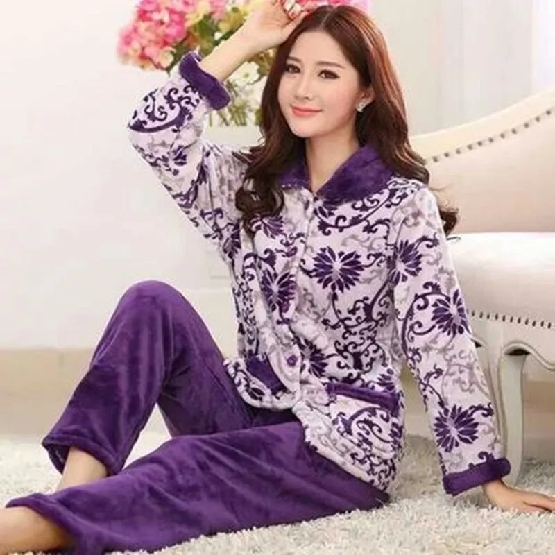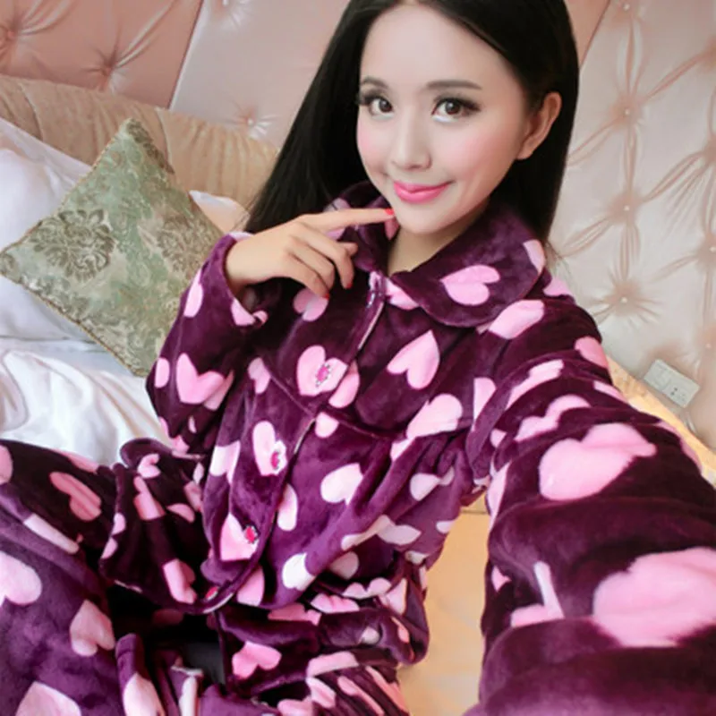 Winter Pyjamas Women Flannel Pyjama Set Turn-down Collar Full Sleepwear For women's Pyjama Home Femme Sleepwear 2018 Top Fashion