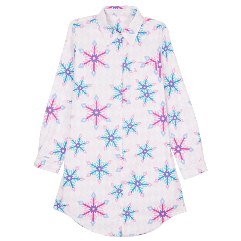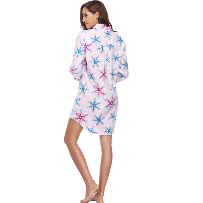 Women's Autumn Cotton Pyjamas Snowflake Printed Nightshirt BF Shirt Sleepwear Long Sleeping Nightgowns Sleep Top For Women Girls