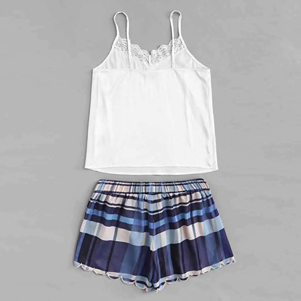 2019 Fashion Girls Cute Lace Sleeveless Strap Lattice Print Underwear And Shorts Pajama Set Sexy Lingerie Intimate Ladies 888
