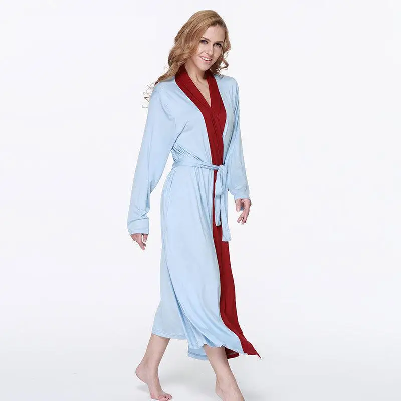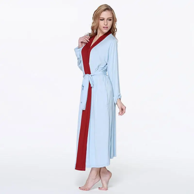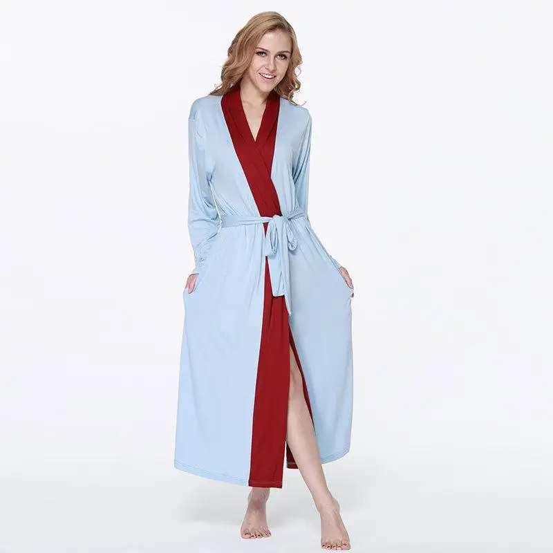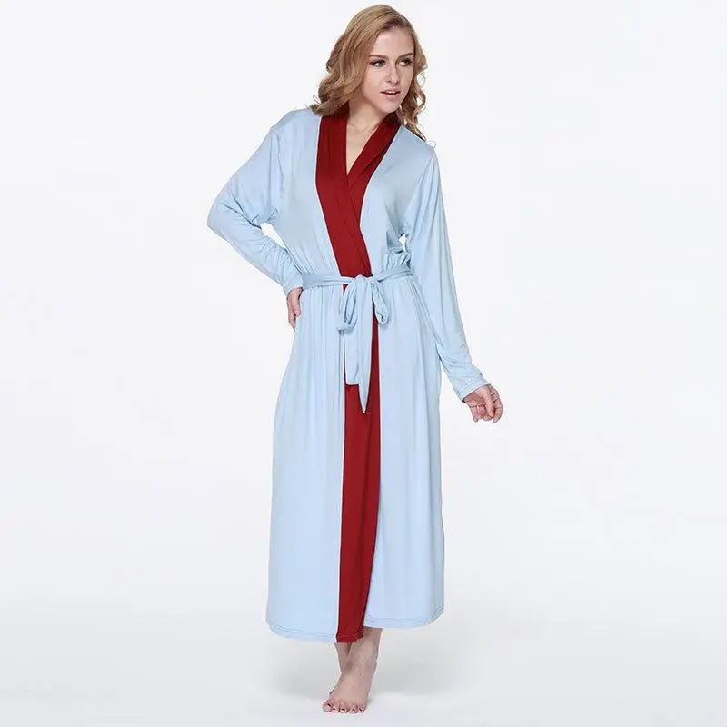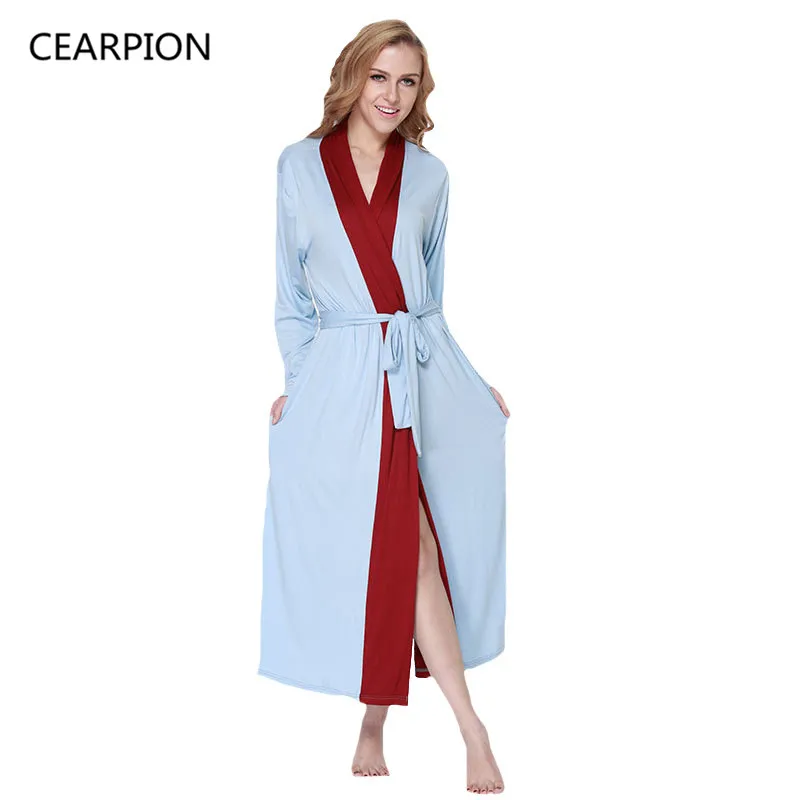 CEARPION New Women Robe Long Sleeve Modal Kimono Bathrobe Gown Patchwork Casual Nightgown Lady Sexy Intimate Lingerie Negligee