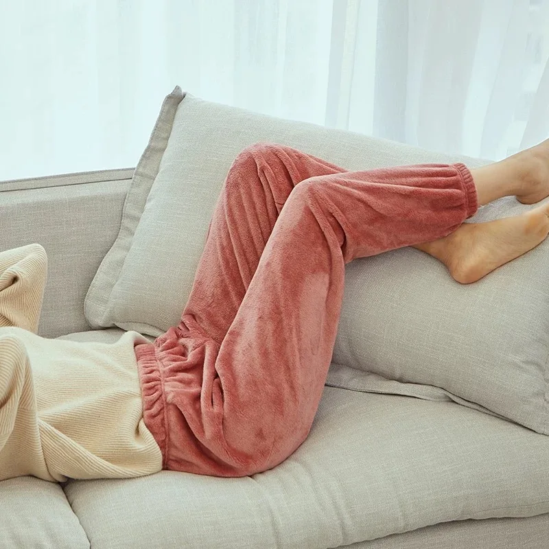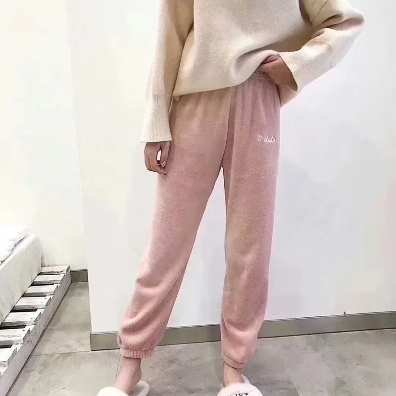 New Winter Wear Lantern Pants Soft Home Pajama Pants Elastic Waist Beam Foot Letter Embroidery Coral Fleece Loose Sleep Bottoms