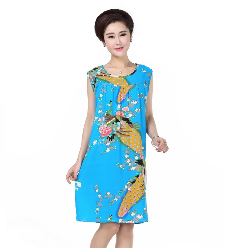 Women Sleeveless Shoulder Cotton Mom Casual Nightgown Dress Coton Club Sleepwear Loose Vestido Size Home 2019 Spring Top Fashion