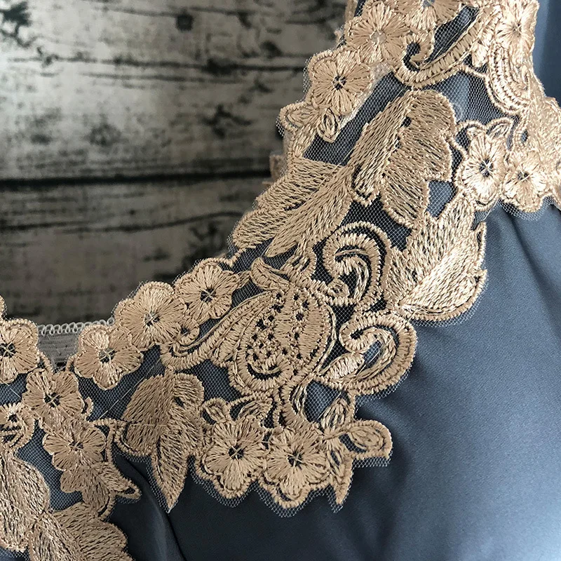ZOOLIM Women Pajamas Sets with Pants 5 Pieces Satin Sleepwear Pijama Silk Embroidery Sleep Lounge Pyjama with Chest Pads