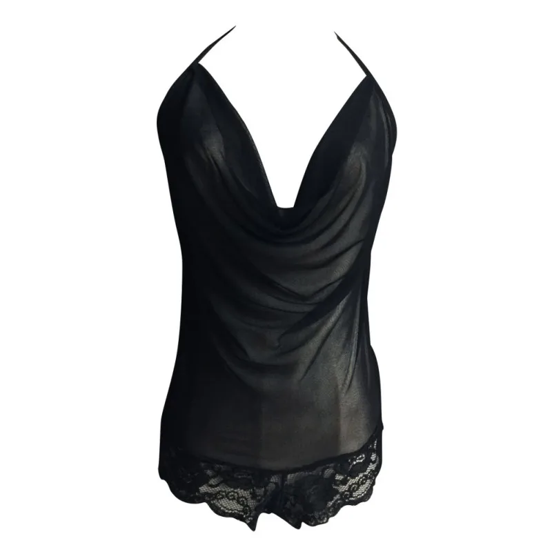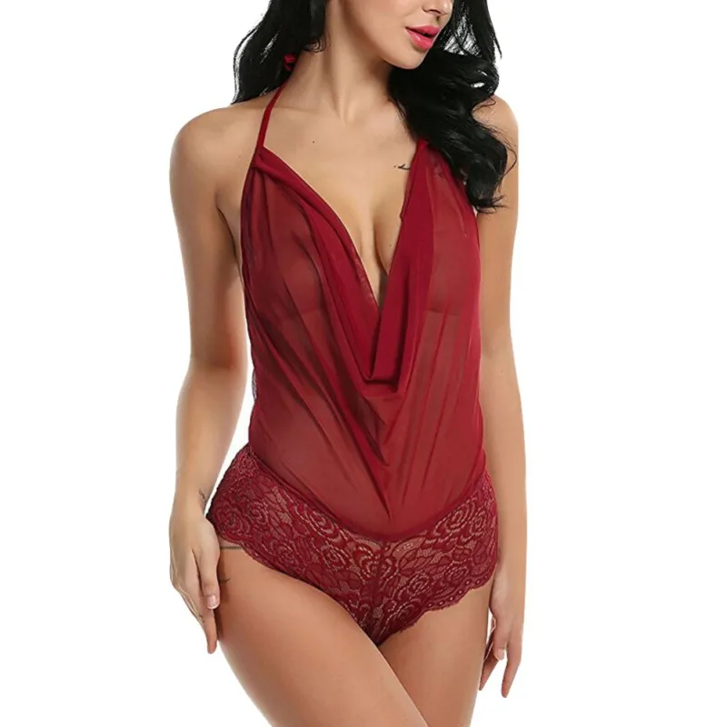 Ladies Erotic Lingerie Women Lace Halter Sexy Sleepwear Sling Deep V Sexy Night Dress See Through Nightwear Female Nightgown YO