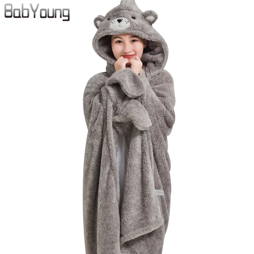 BabYoung Winter Women Robes Flannel Shawl Kimono Bath Long Sleeve Cosplay Warm Bathrobe Lunch Break Air Conditioner Blanket