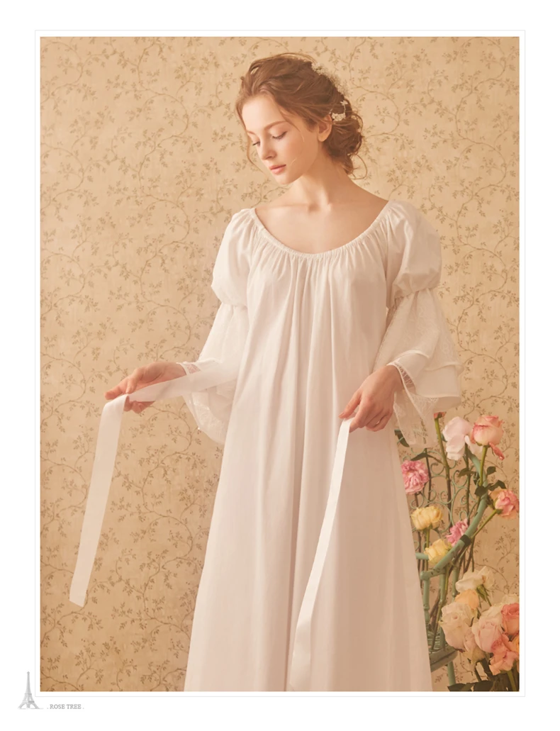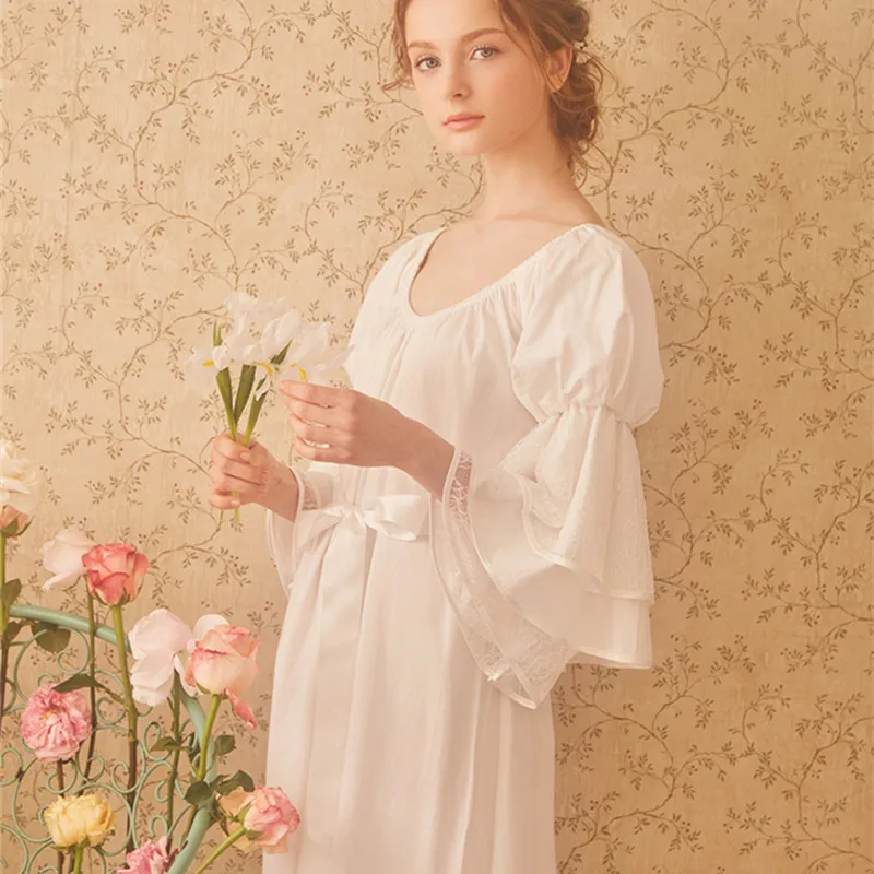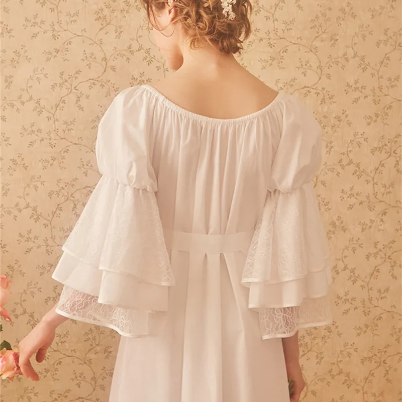 Ladies sleepwear 100% Cotton princess nightdress Classical royal nightgown Puff sleeve pyjamas