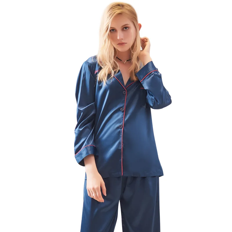 Xifenni Pajamas Sexy Faux Silk Sleepwear Male Female Fashion Blue Satin Silk Couple Pyjama Sets Casual Home Clothes 9221