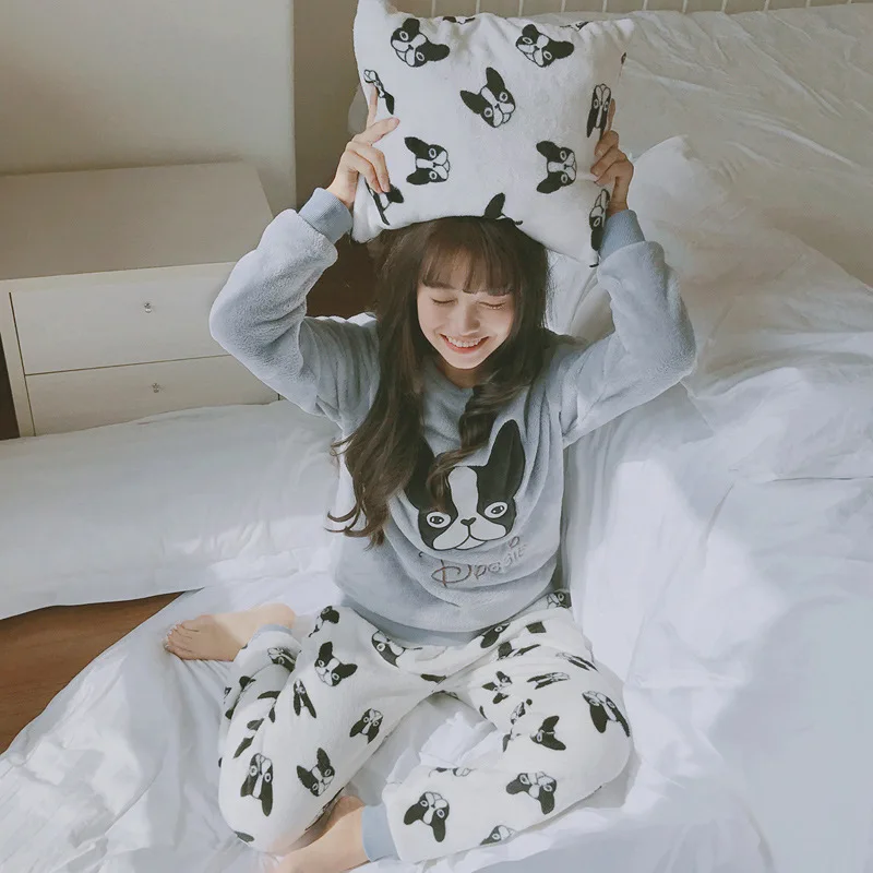 Pajamas women's winter set long-sleeved coral velvet cute cartoon ladies home clothing autumn and winter thick warm flannel suit