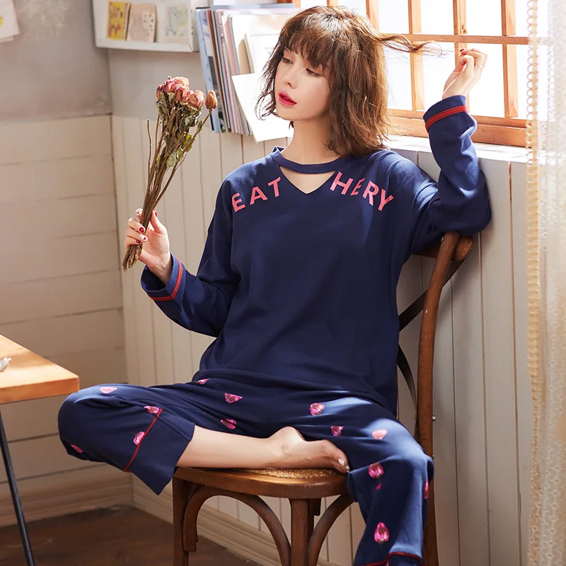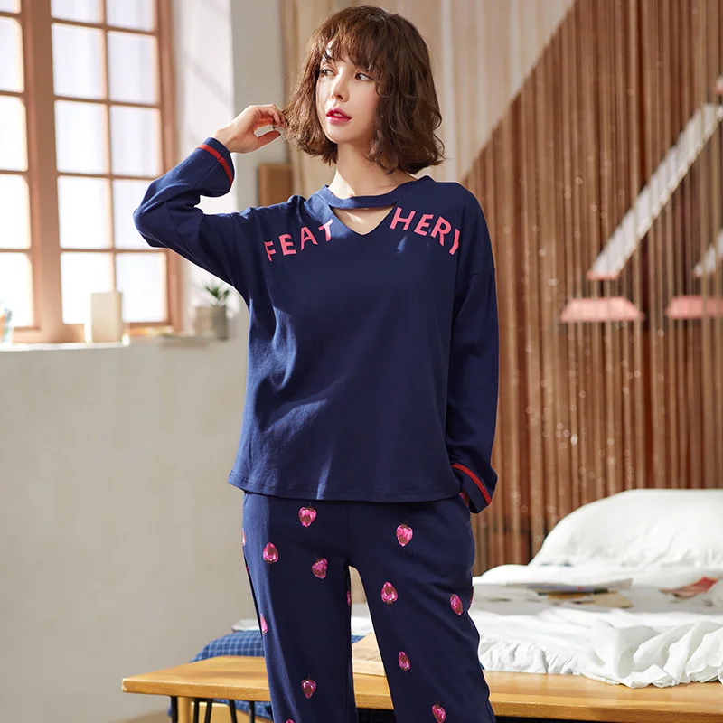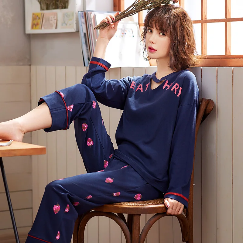 Aliexpress has Spring And Autumn Cartoon Strawberry Full Sleeve Pure Cotton Lady Pajamas Homewear Thin Sets for just $ shipped.