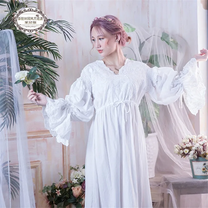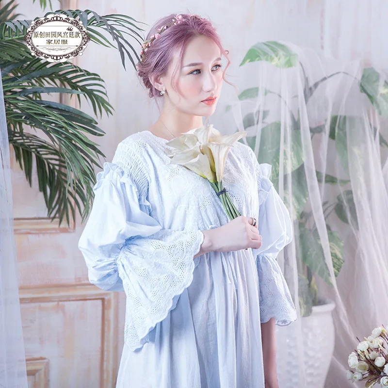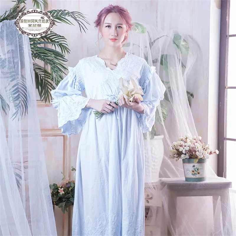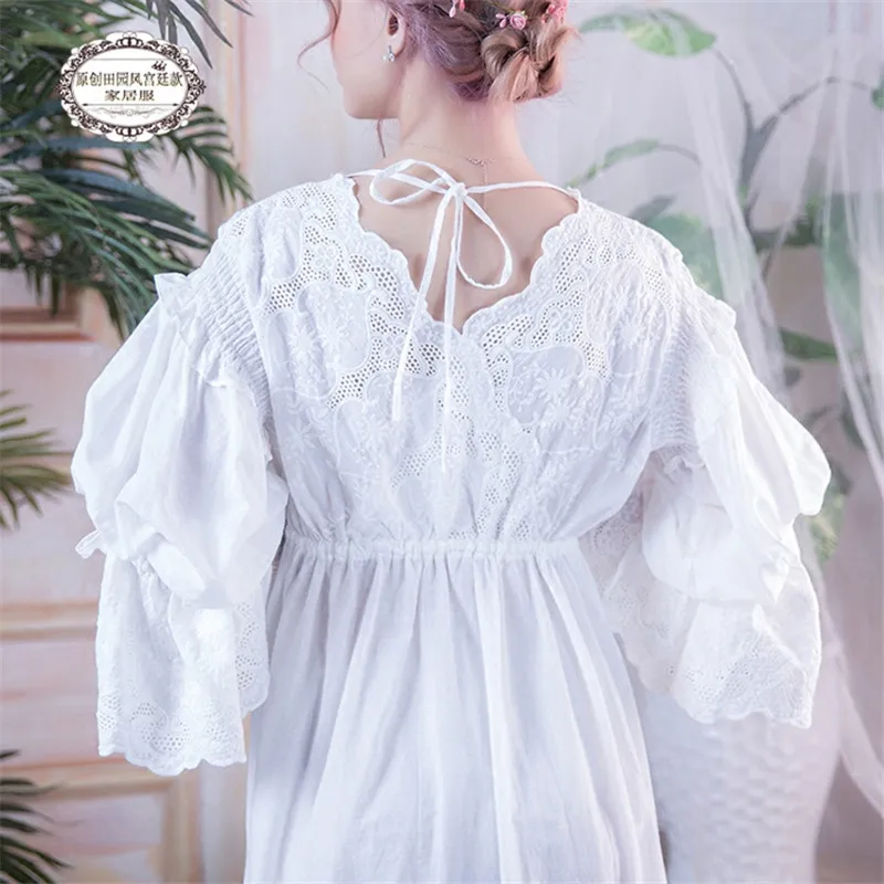 Vintage Gown Women Dress Cotton Sleepwear Nightgown Casual Sleepwear Women Night wear European Retro Style Dress For Ladies 6001
