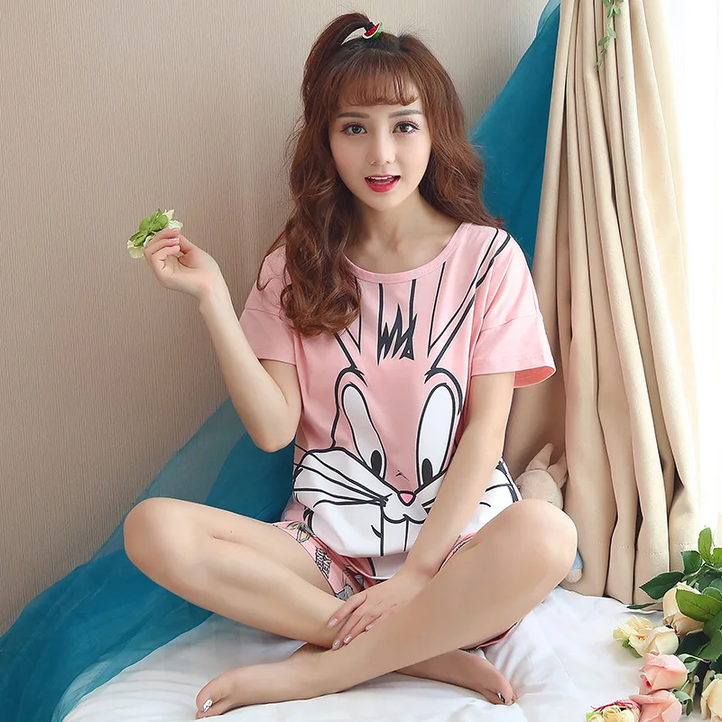 2018 new cotton pajamas women summer cartoon bugs bunny short-sleeved shorts pajamas home service cute two-piece suit sleep wear