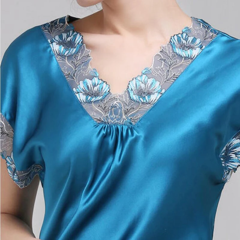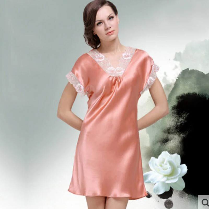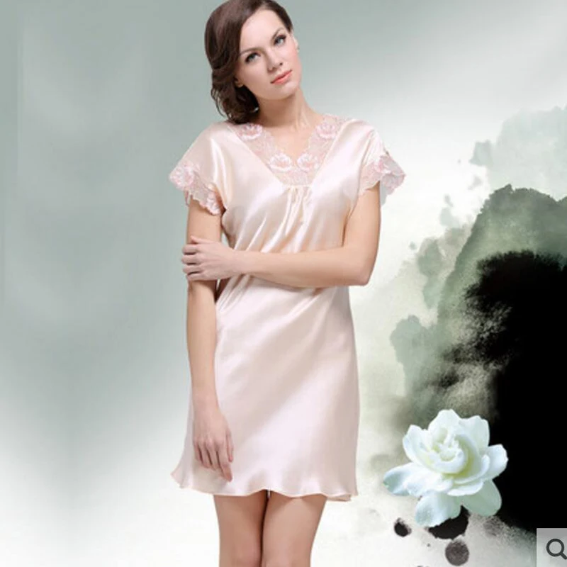 Ladies 100 silk dress Night Dress Sleeveless Nighties V-neck Nightgown Real Silk Nightdress Lace Sleepwear Nightwear For Women