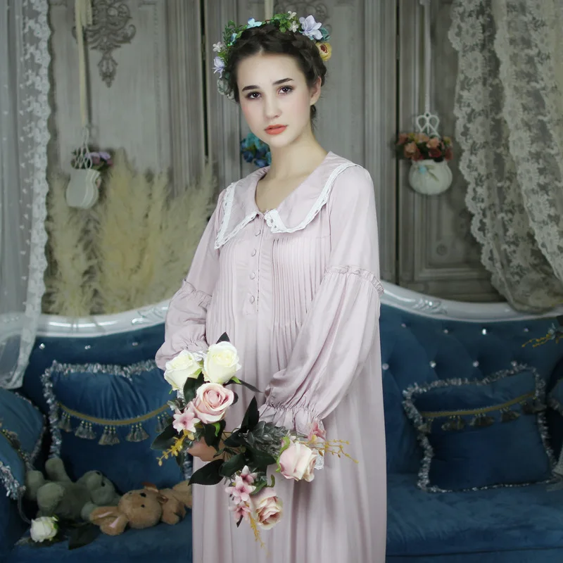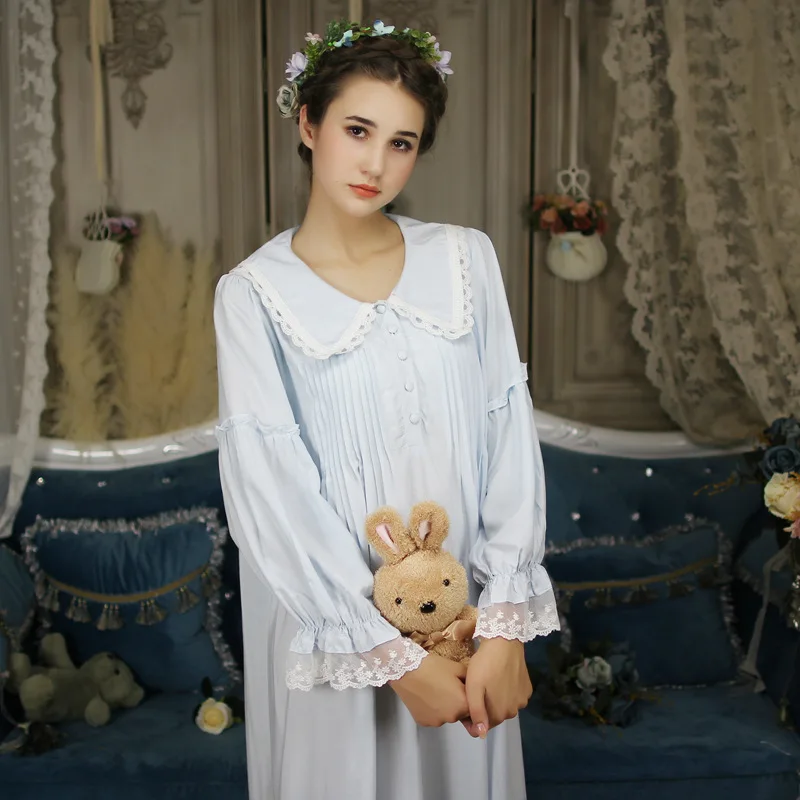 New Arrival Retro Sweet Princess Lady Nightgowns Cotton Palace Nightdress Long-Sleeve Lace Sleepwear Female Home Wear BL615