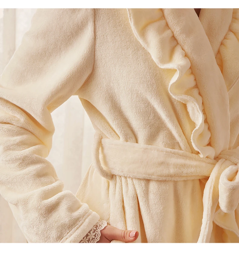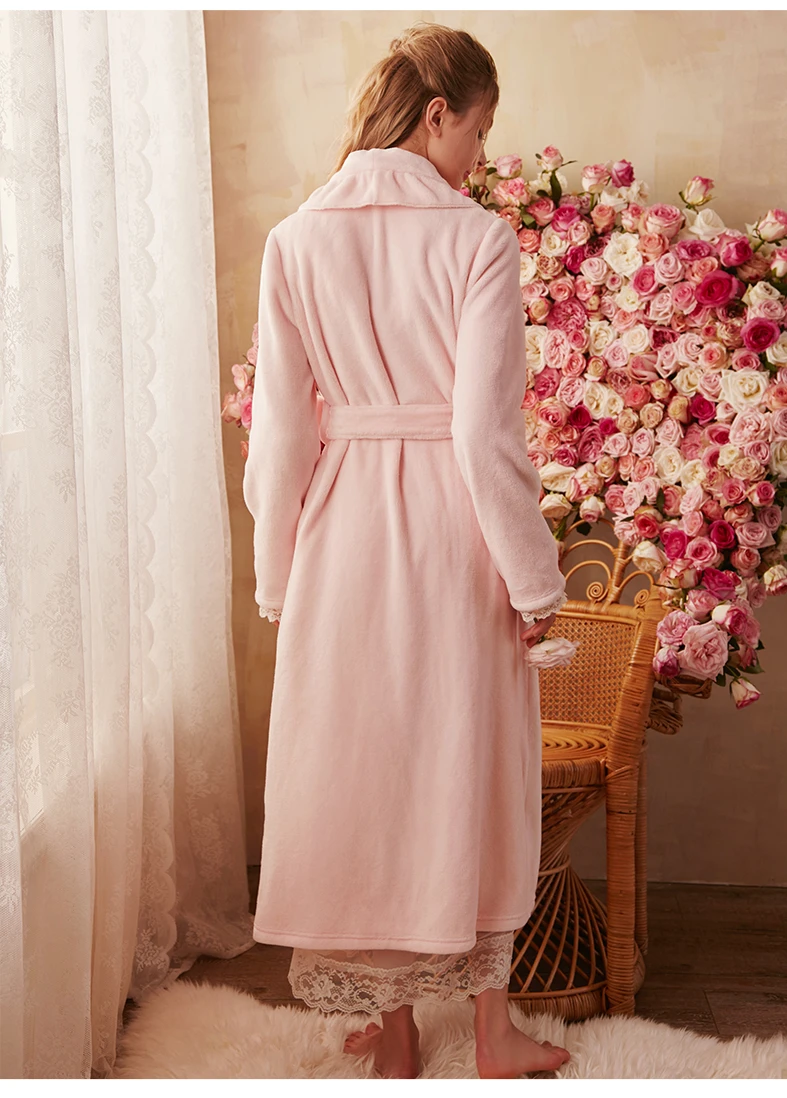 Robe Winter Women Long Gown Elegant Bathrobe Coral fleece Robes Pink Sleepwear Warm Robe For Ladies Homewear Robe High Quality