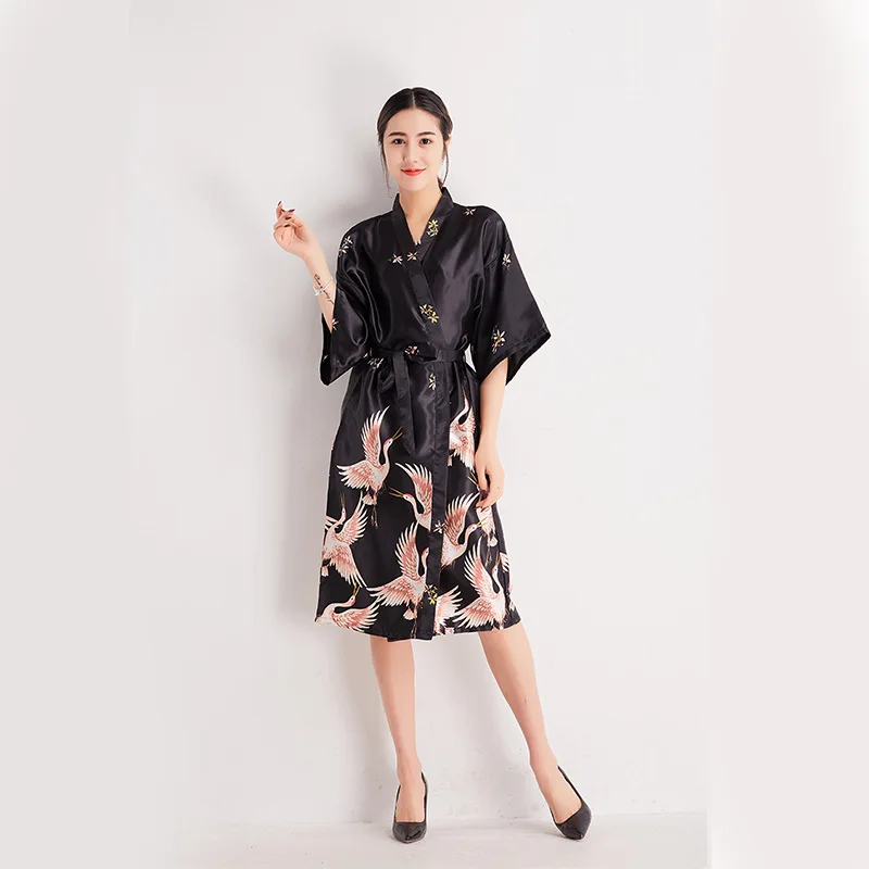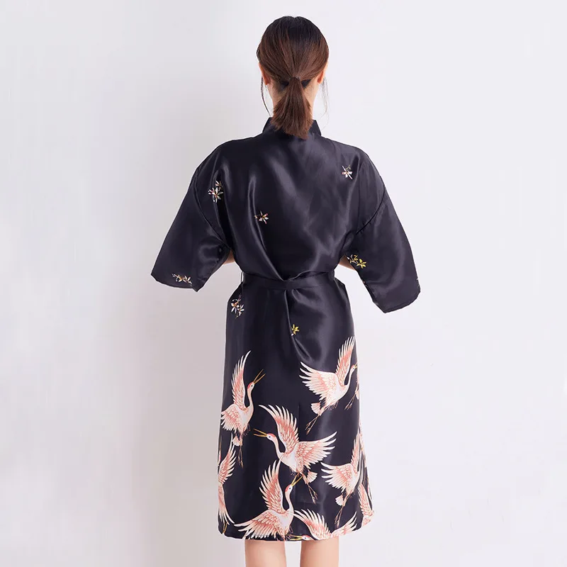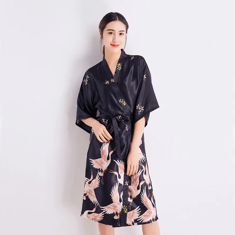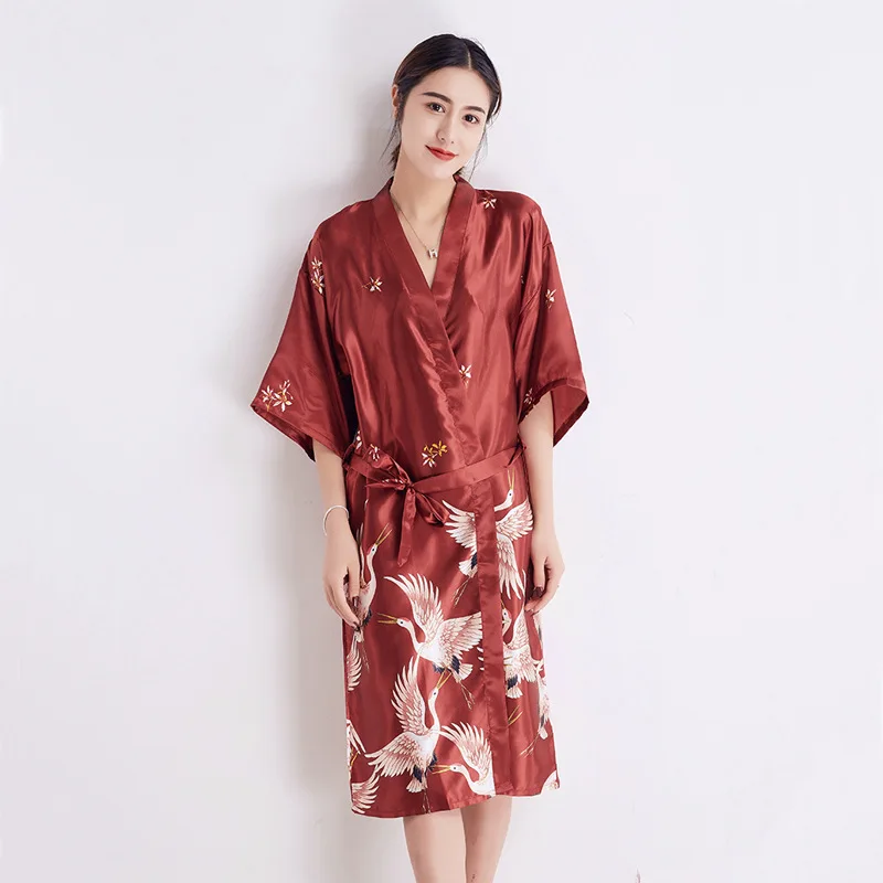 Robe Women Sleeping Gown Girl Silk Bathrobe Crane Bridesmaid Dress Sexy Seductive Home Dress M-XXL