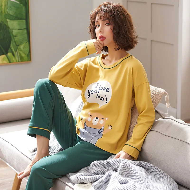 Aliexpress has Spring And Autumn Cotton Lady's Homewear Suit Cartoon Bear Sweet Pure Cotton Female Pajamas Sets for just $ shipped.